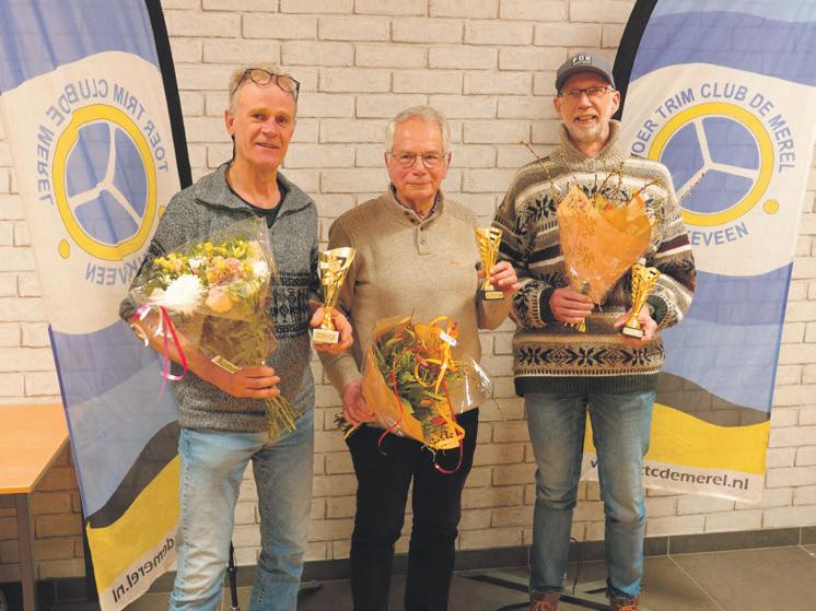 Dinsdagavond 17 februari 2026 werden de kampioenen gehuldigd; deze keer waren dat: 1e prijs kilometer competitie: Gert Korver 13.606 km. (links) 1e prijs punten competitie onder 65 jaar: Jan Willem Bouwman 3560 punten. (rechts) 1e prijs punten competitie boven 65 jaar: Ger Hulsman 7306 punten. (midden)