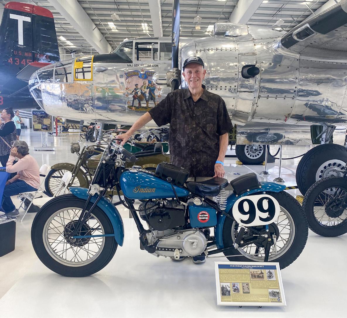 Across the way, our favorite motorcycle historian and former Dealernews publisher Don Emde was selling signed copies of some of his books… and donating $20 to the Museum for each copy sold. A period correct replica of his father’s old Big Base Indian Scout was also in the Hangar (and in addition to chronicling motorcycle history, Don and Floyd made history as the only father-son tandem to ever win the Daytona 200!