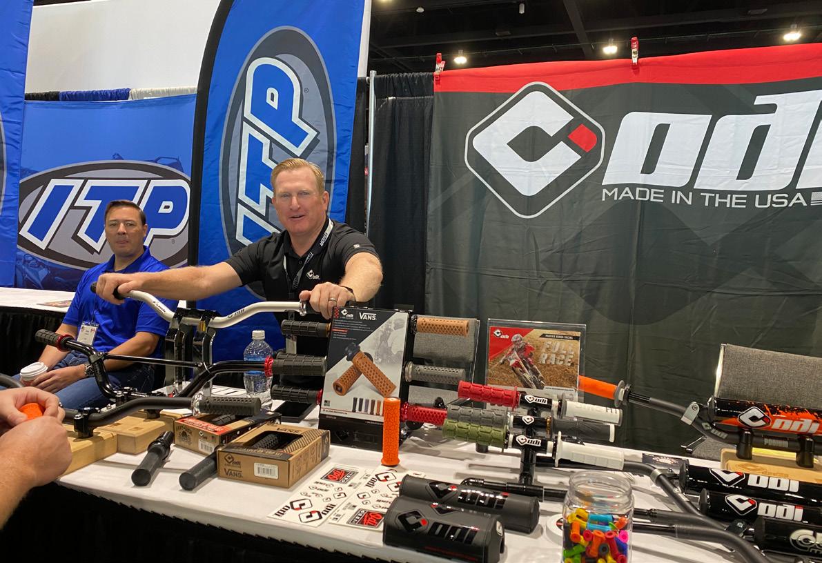 Speaking of Kawasaki, one of Ricky Carmichael’s Works KX was on display in the main hangar. Appropriately enough, David Dewhurst’s display and copies of his Golden Era of Motocross were adjacent to the GOAT’s former factory ride. And when we walked by, the legendary photojournalist was deep in conversation with Nick Domokos — the Wheelie King Doug Domokos’ son.