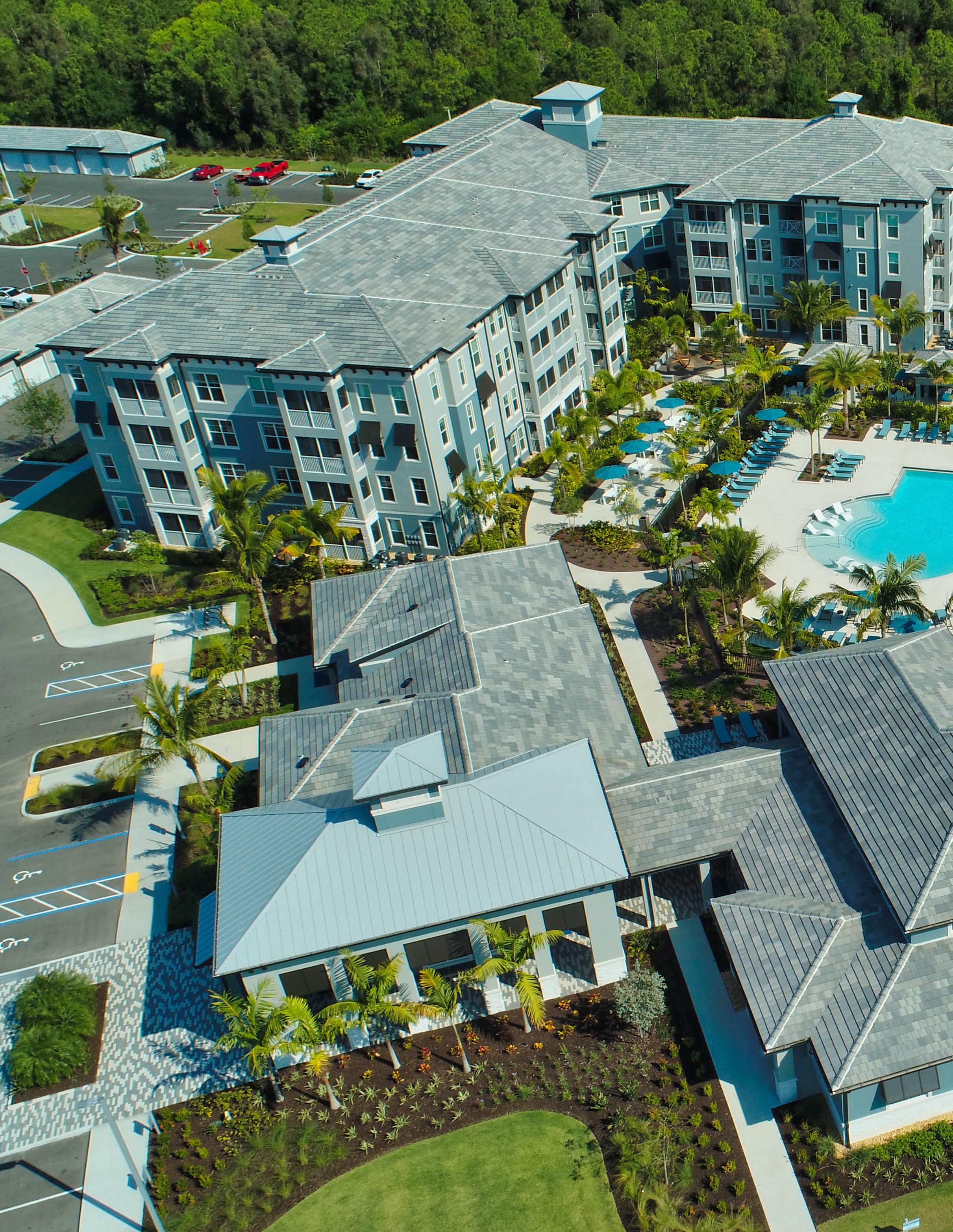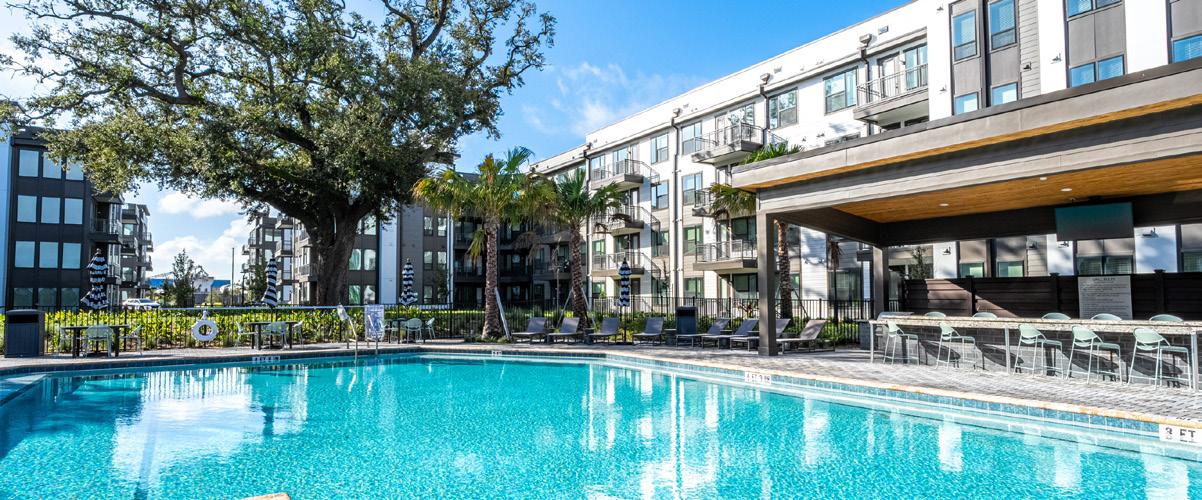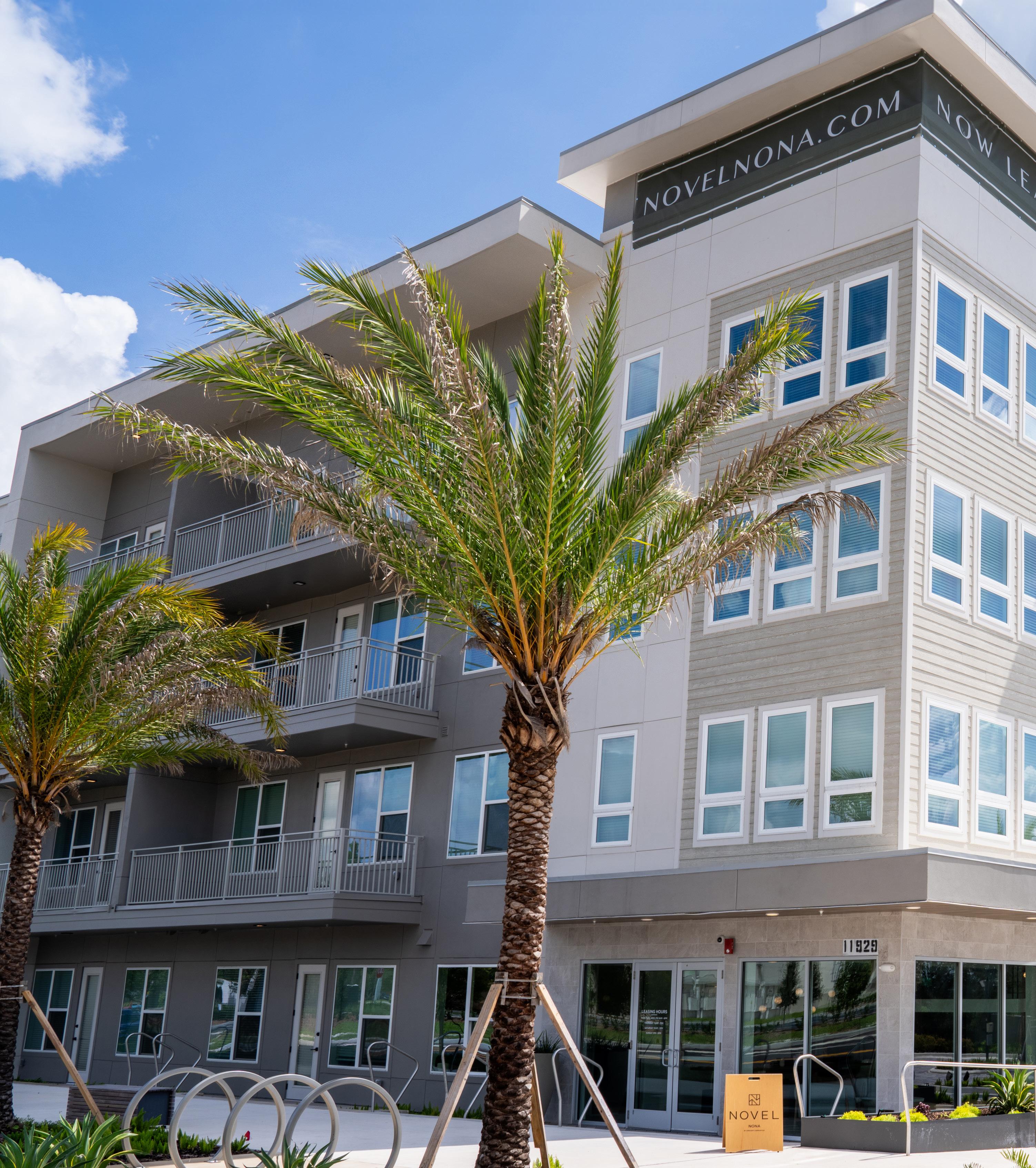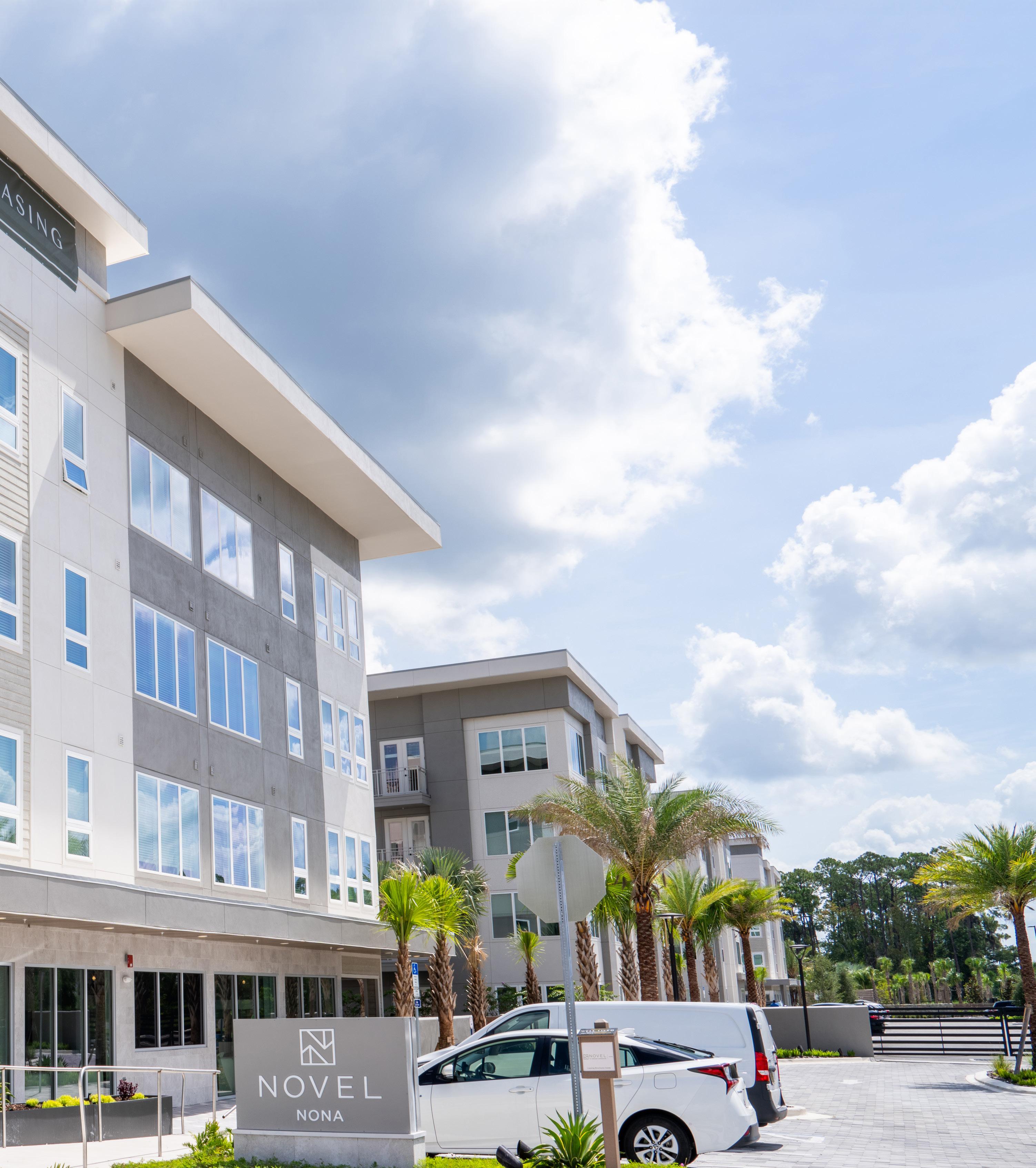 Novel Nona project focused on catering to a wellness style living community with the construction of a brand new multifamily apartment complex. 260 living units are spaced out across two, four-story buildings which feature high-end, luxurious finishes. Residents will find themselves at home both inside their private residences and around the grounds, where numerous amenities provide them with endless opportunities for entertainment. Novel Nona features a fully saltwater pool, cabanas, preserved green spaces, outdoor grilling stations, trail passages, courtyards with fire pits, docks for kayak launches, and more!