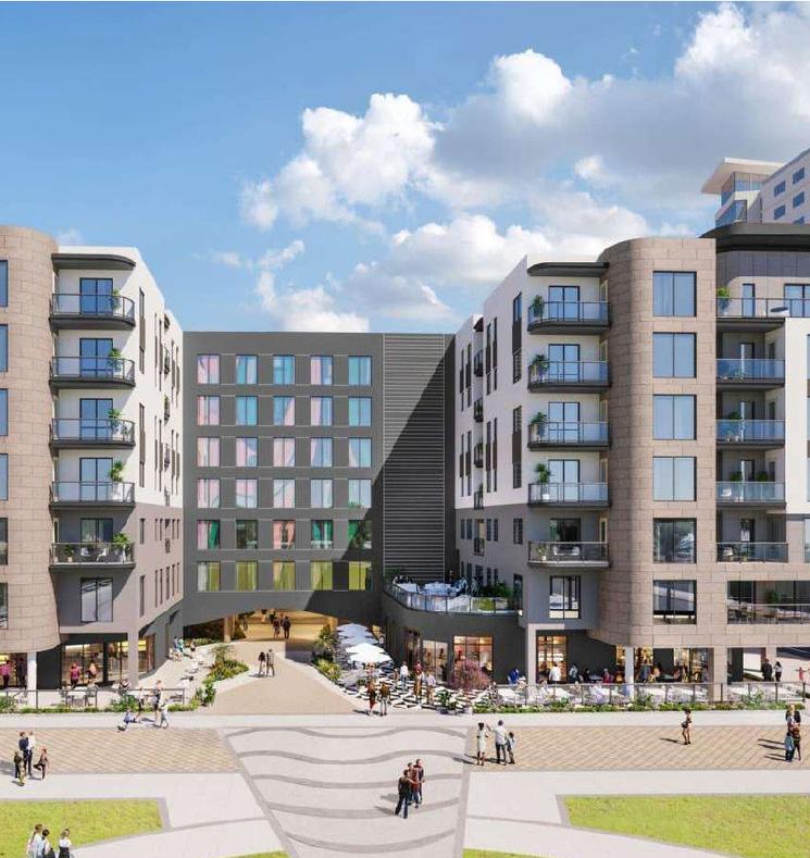 Adding to this impressive list of amenities is a brand-new, multi-family project spanning 14 acres and encompassing 520,000 sq. ft. The project comprises nine buildings, containing 331 units, with an additional 20,000 sq. ft. of retail space. The development offers ample parking with 151 structured parking spaces and 631 surface parking spaces.