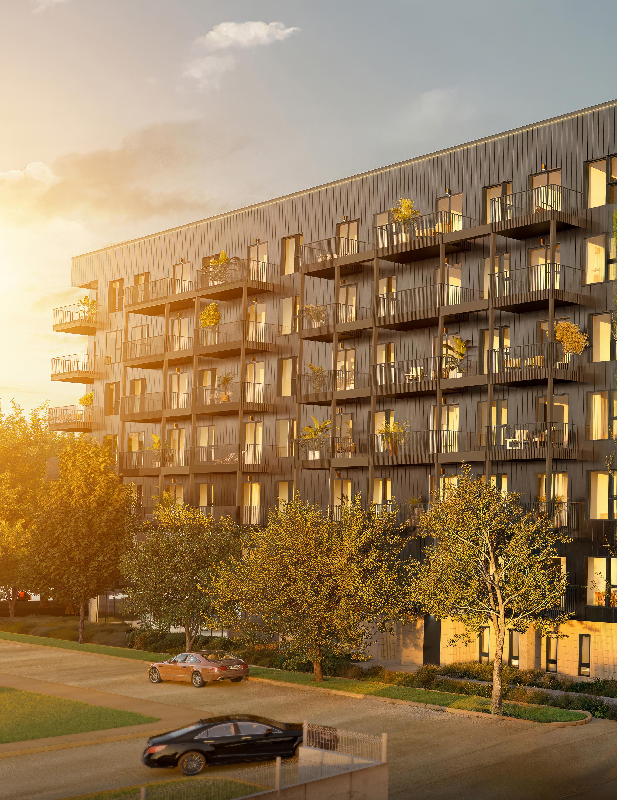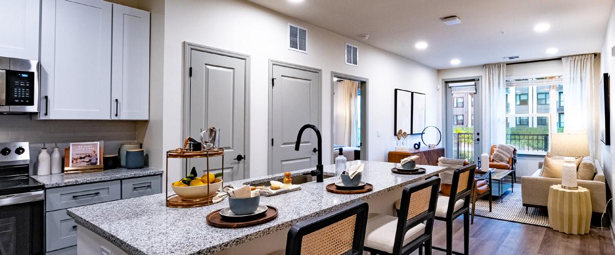 Designed with residents’ comfort and convenience in mind, the multi-family project boasts an extensive range of amenities, including a fitness room, a pool, outdoor fire pits, and a dog park, among other extras.