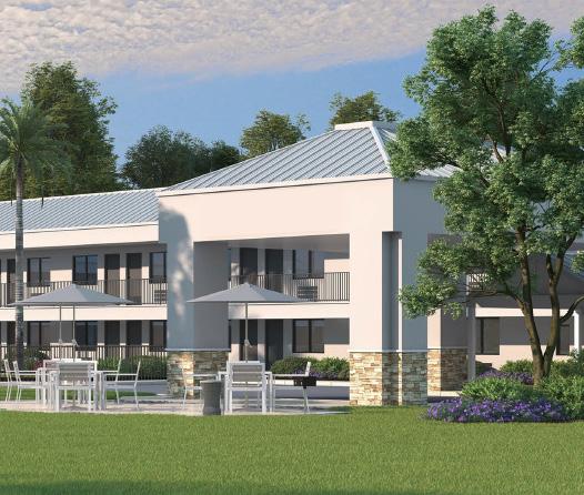 The Glenridge North Community expansion focuses on the development of private homes and villas on a 60-acre site. Initial work included land clearing and the creation of streets and retention ponds throughout the property in preparation for the residential homes. Several models of club-style homes and villas offer future residents a variety of options when it comes to a comfortable living solution. Models vary from attached duplex style to two-bedroom private residences. Each comes with the comfort of modern living with custom finish options.