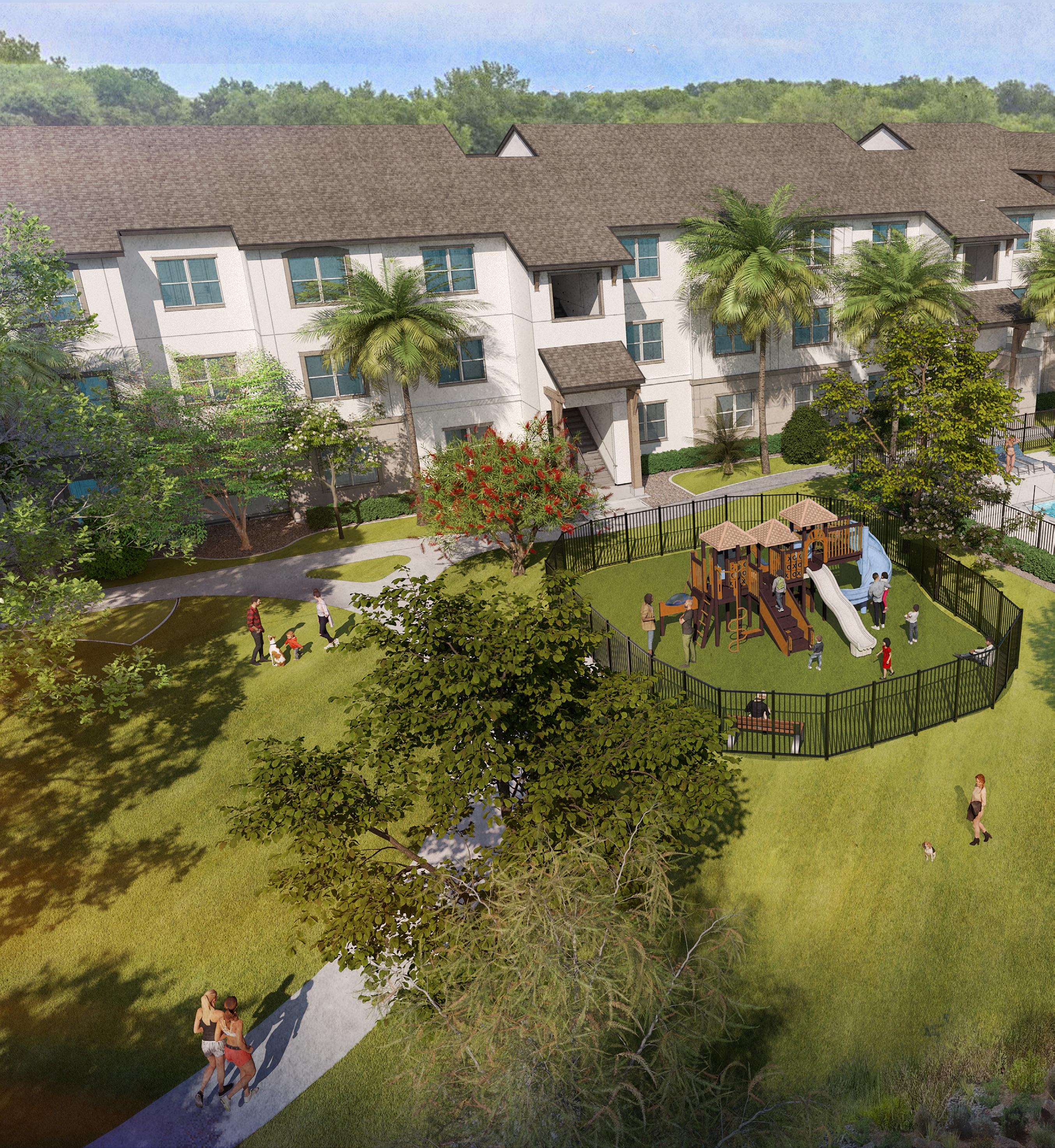 Designed with residents’ comfort and convenience in mind, the multi-family project boasts an extensive range of amenities, including a fitness room, a pool, outdoor fire pits, and a dog park, among other extras.
