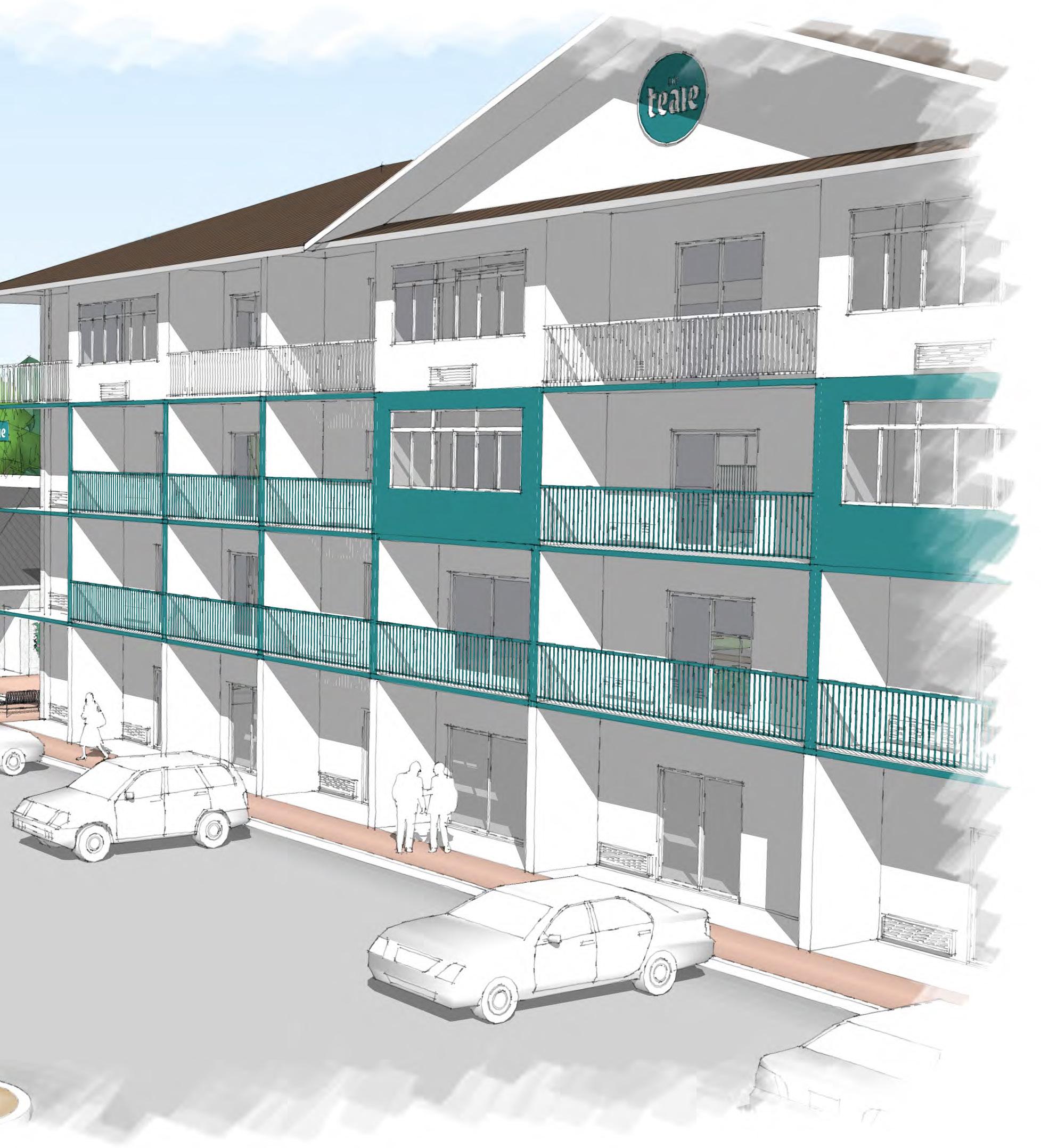 Multi-family complex that will feature 48 living units across three floors that will surround a fenced-in courtyard, swimming pool.