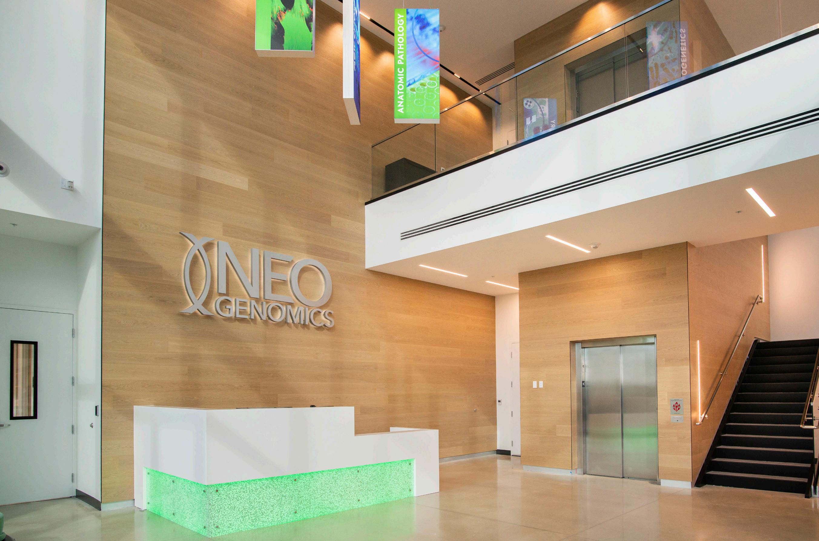 NeoGenomics is a premier cancer diagnostic, pharma services, and information services company serving oncologists, pathologists, pharmaceutical companies, and academic centers in their pursuit of providing better futures for people living with cancer. DeAngelis Diamond was hired to build the NeoGenomics Headquarters. The project consisted of constructing three separate buildings including their 75,000 sq.ft. office building. The value of the office build out was over $9.4 million dollars with state-of-the-art technology and high-end finishes. Some of the components of the office building include multiple conference and meeting spaces, training rooms, media center, kitchen & break room, a grand staircase, and spacious reception area.