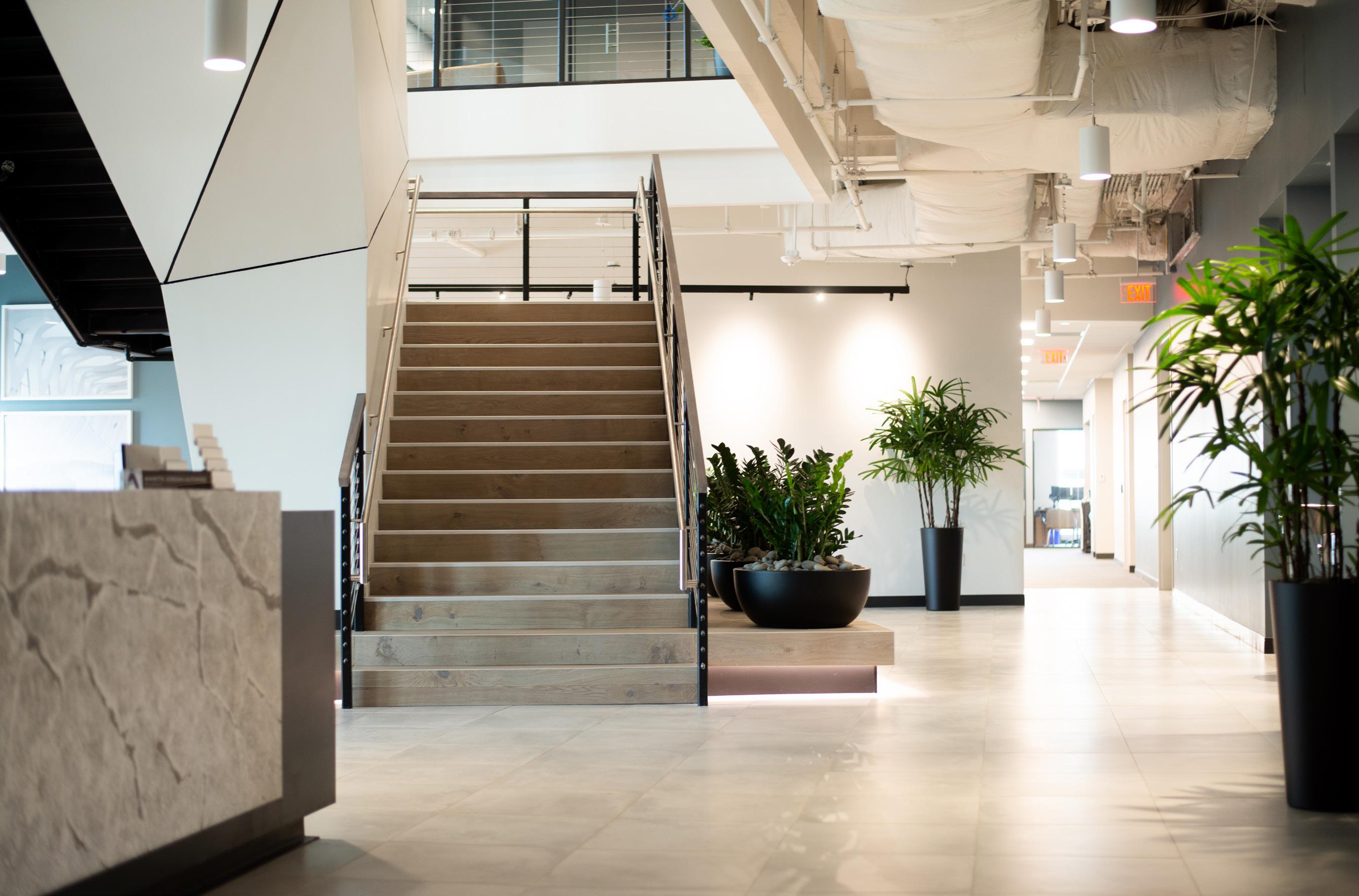 Prepare to be impressed by the stunning interior renovation of the 4th and 5th floors of the CNL Tower I in Downtown Orlando. The construction work is extensive, featuring a brandnew connected staircase that gracefully unites the two floors, and a gorgeous glazing system that bathes private offices and conference rooms in natural light. Along with the new coffee bar, café, breakrooms, and workstations, you’ll find an inviting elevator lobby on the 4th floor that adds a touch of elegance to the space.