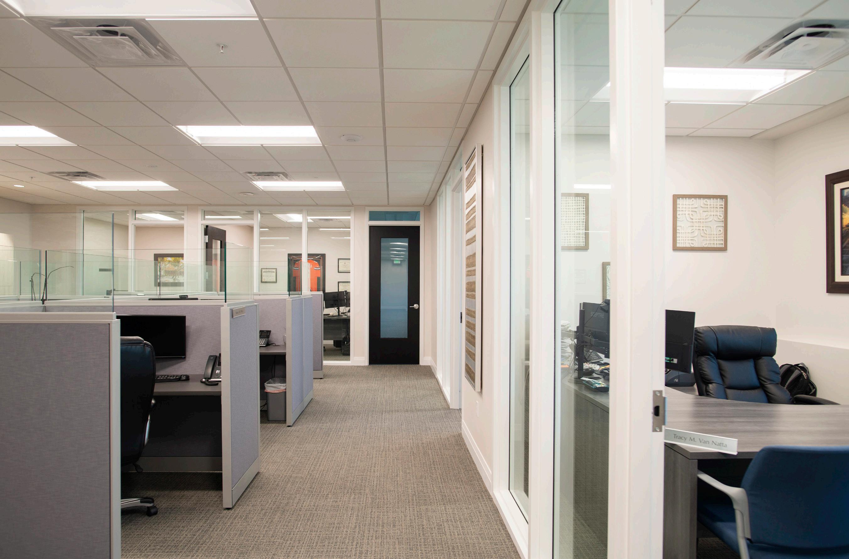 This tenant improvement project consists of private offices, a reception area, a kitchen, a breakroom, a copy, and conference rooms.