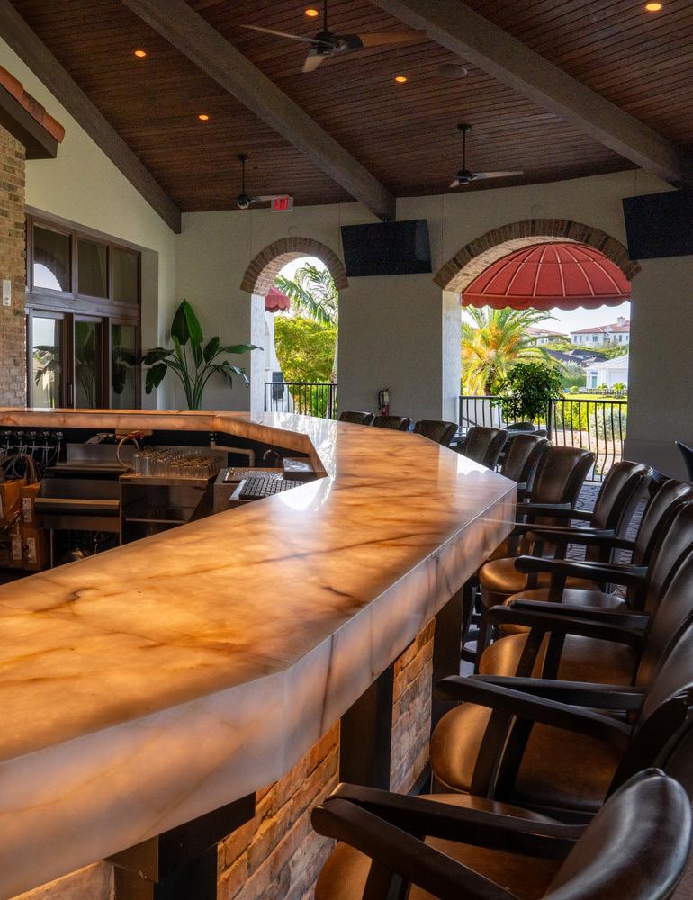 Renovation of outdoor fireplace area at the Talis Park Clubhouse. Includes the addition of a new bar, LED lit stone counter tops, modern finishes, and new awnings.