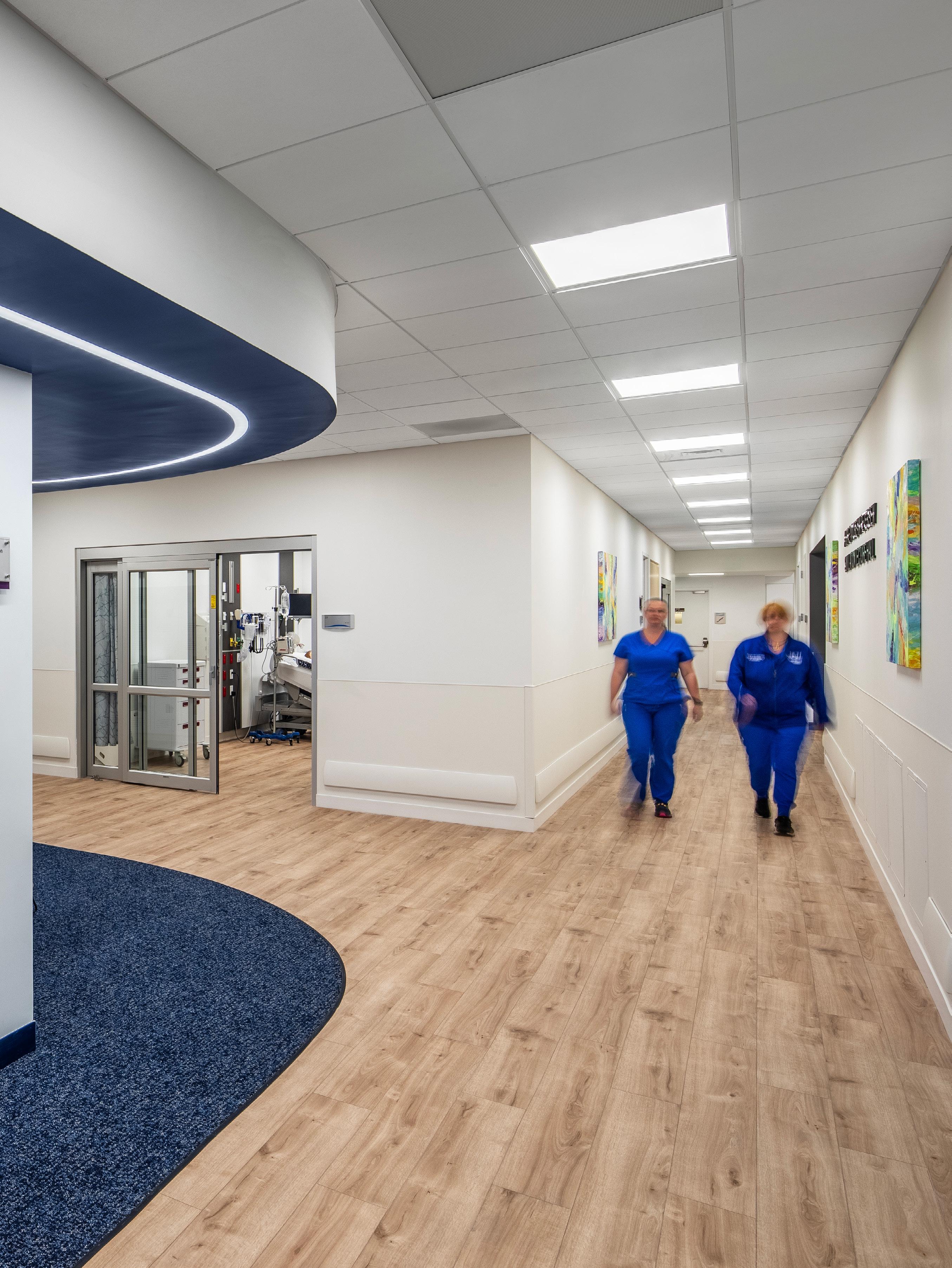 The emergency department was a standout feature, encompassing 16,000 sq. ft. and containing 19 beds arranged in a Lean care track, which was carefully designed to optimize the staff’s processes and ensure efficient patient care. The radiology department, meanwhile, was a well-equipped 6,000 sq. ft. space that included advanced imaging technologies such as an MRI, CT scan, X-ray, and Flouro.