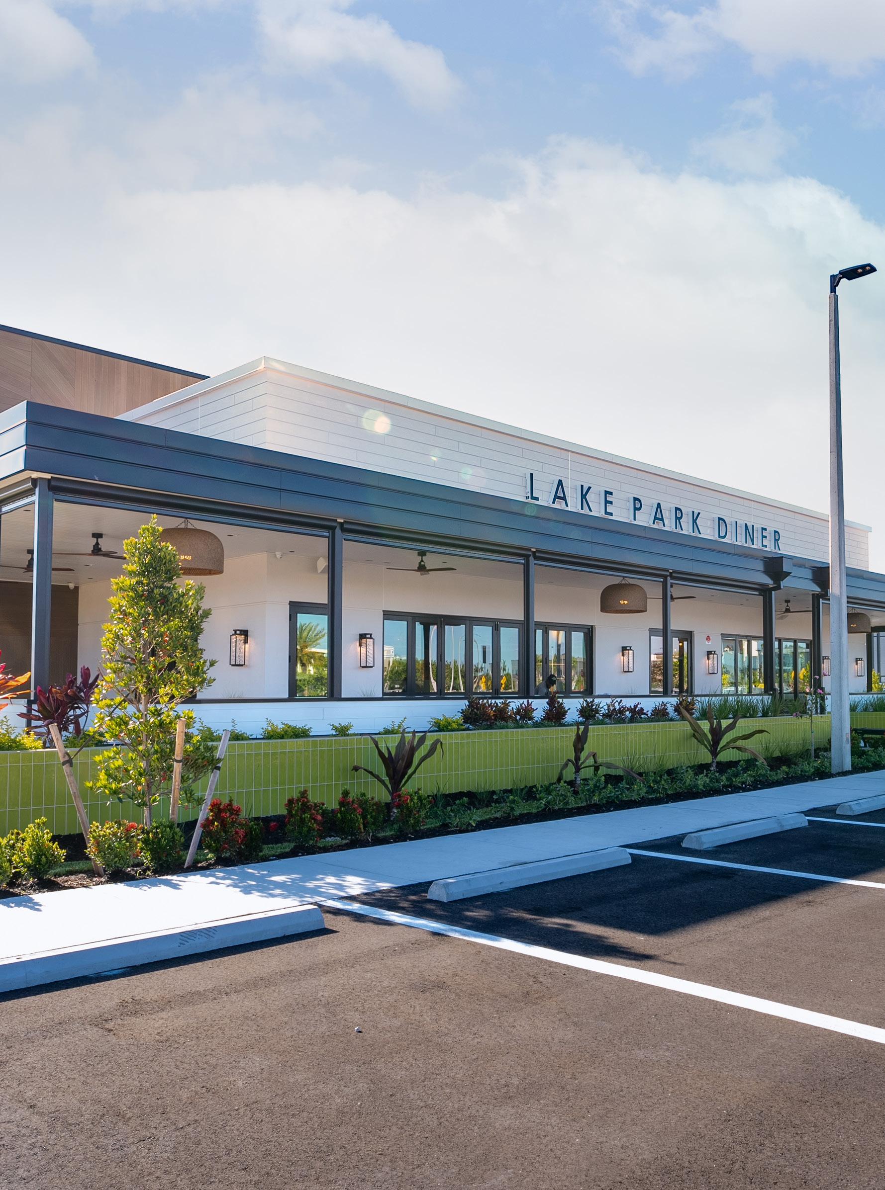The Lake Park Diner project is an all-new casual dining experience in Naples, FL. This nearly 7,000 sq. ft. build, provides diners with a comfortable environment to enjoy their meals. A state-of-the-art commercial kitchen services both staff and diners in preparation of food. Diners can enjoy seating in both the spacious interior of the building and the expansive, covered patio that extends around the front of the restaurant.