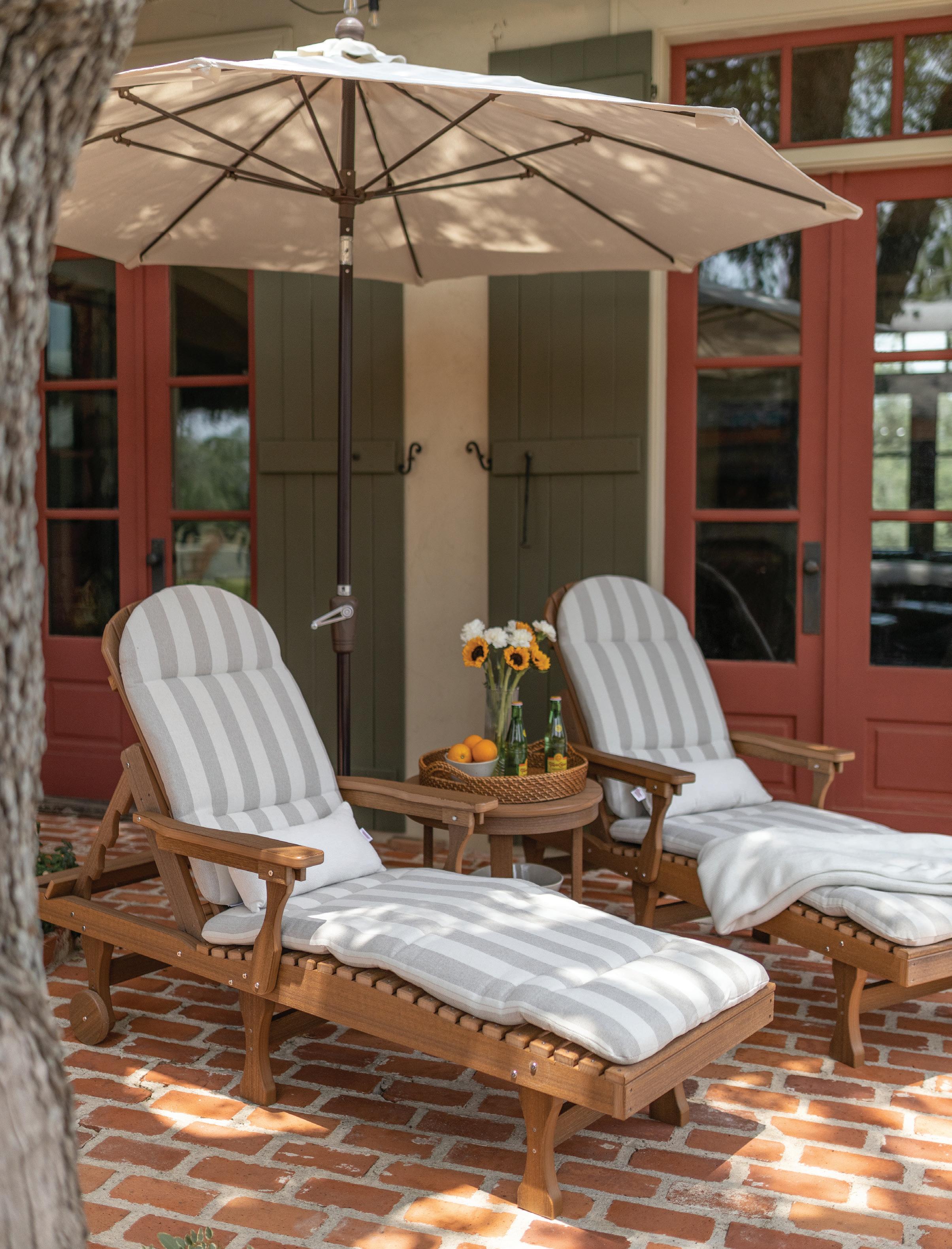 Add shade to your outdoor space with an umbrella. Our 9 foot umbrellas come in either bronze or white fiberglass frames, to be paired with your choice of Sunbrella fabric (see pages 58-60 for available fabrics).