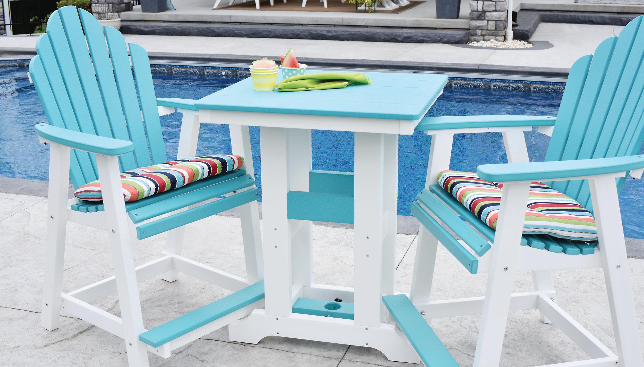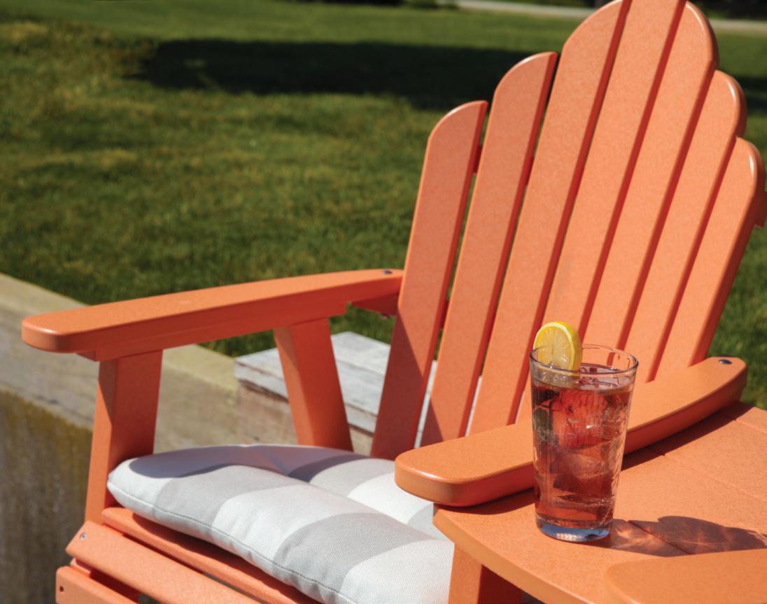 Poly furniture is made from high-density polyethylene (HDPE), a recyclable plastic that never needs to be painted or stained. It will not rot or splinter, and contains added UV protection to resist fading.