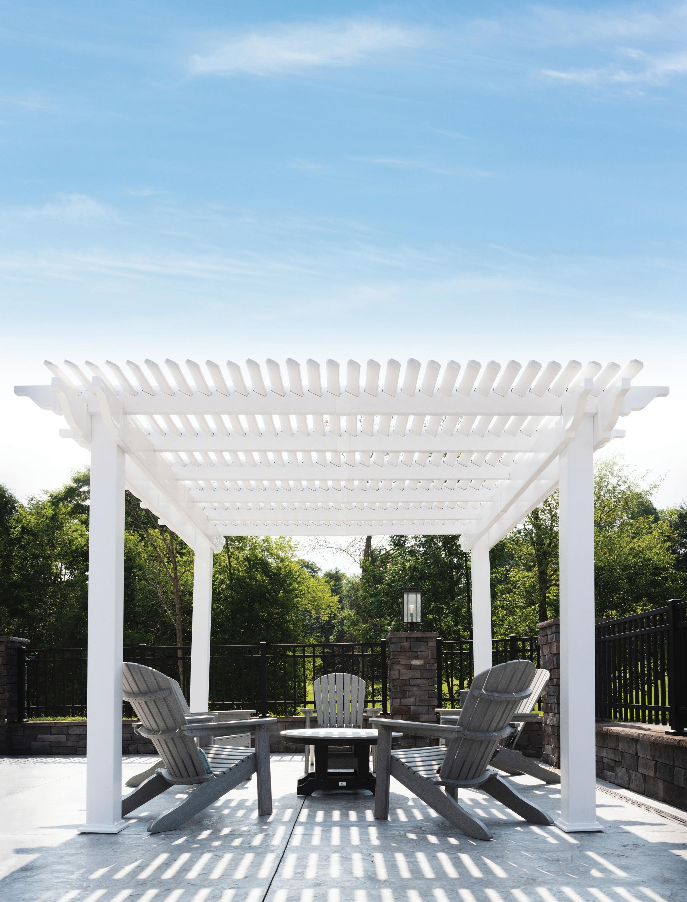 With its crisp, clean lines, the Bradford Vinyl Pergola complements your home with classic styling.