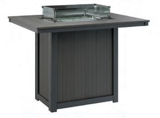 LEFT: Kinsley Side Bar Chairs in Matte Black. ABOVE: (Clockwise from top left) Kinsley Lounge Chairs in Graphite. Cushions in Pizzazz Fog and throw pillow in Dip Dye Chickadee. Kinsley Counter Arm Chair in Matte Black with Heritage Char Kinsley Seat and Back Cushion. | Kinsley Lounge Chairs in Graphite paired with a Graphite Numa Fire Pit with a Stainless Hammered Top. Cushions in Pizzazz Fog and throw pillows in Dip Dye Chickadee. Shown with 8' X 11' Fig Rug.