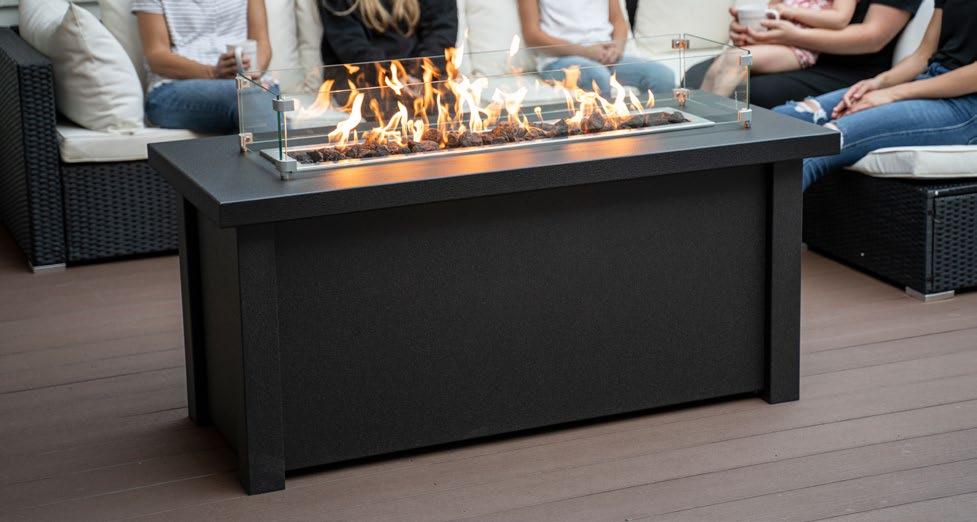 Linear Design in Graphite + Glass Wind Shield Square Design in White and CharcoalThese standard-size aluminum fire tables are available in all of our outdoor finishes.