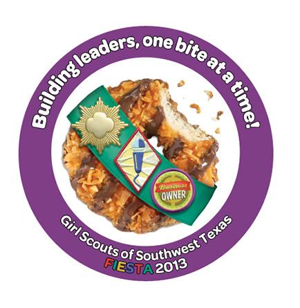 ¡Viva Fiesta!— Girl Scouts took part in a variety of Fiesta events, including the Battle of Flowers and Fiesta Flambeau parades. The first-ever Girl Scout cookie Fiesta medal was created, featuring the Samoa as the first of a five-cookie series.