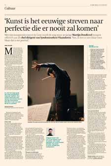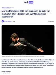 “Dertigisinde dirigentenwereldnog piepjong,maarhijheeft aleenongelofelijke maturiteit,zonderhet jeugdigeenthousiasme teverliezen” KorneelAlsteens HoboïstSymfonieorkestVlaanderen WieisMartijnDendievel,deinternationaalveelgevraagdedirigentdievanafdezezaterdagdenieuwe chef-dirigentisvanSymfonieorkestVlaanderen?“Dat hijeenVlaamsedirigentaanhethoofdvaneenVlaams orkestis,isnatuurlijkdekersopdetaart.”