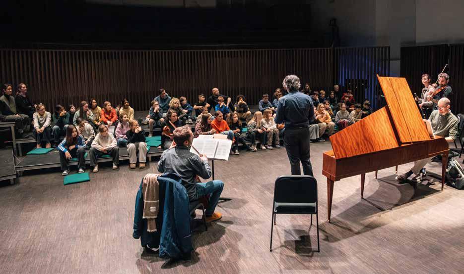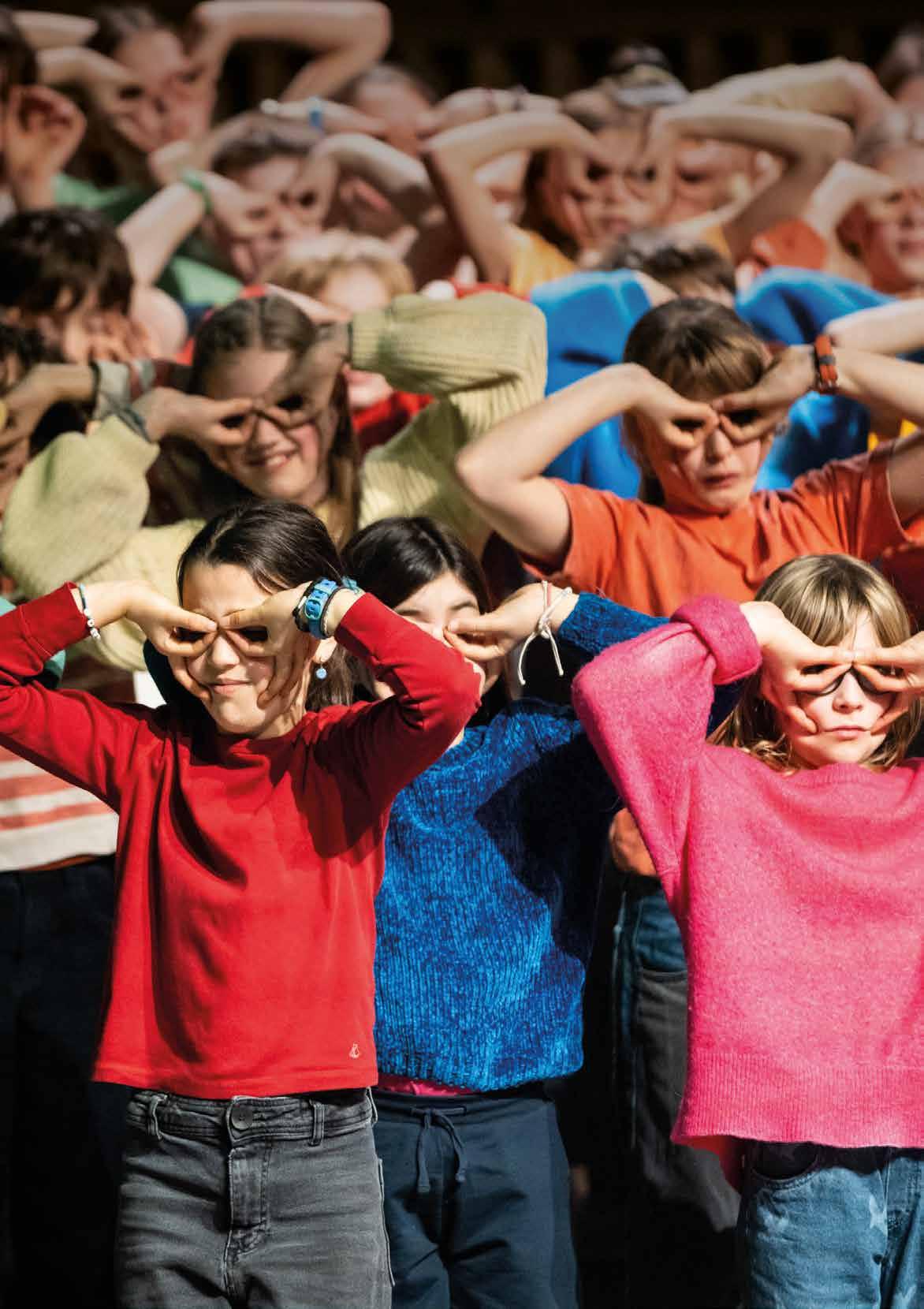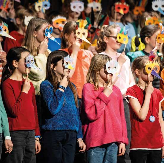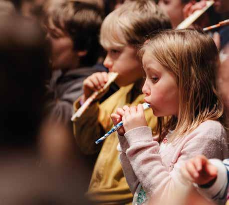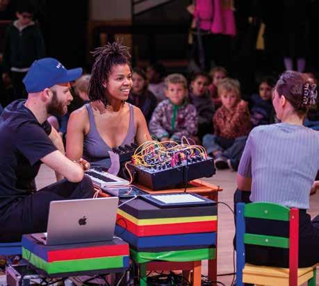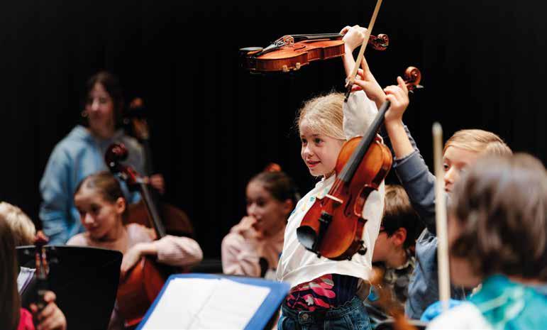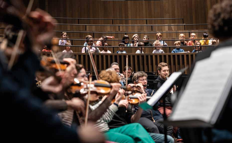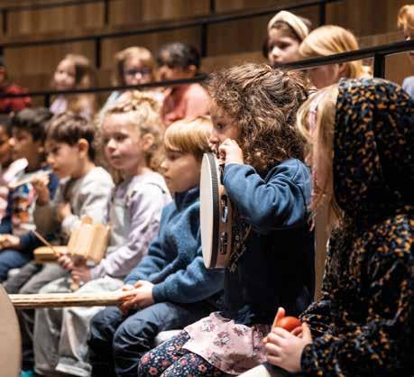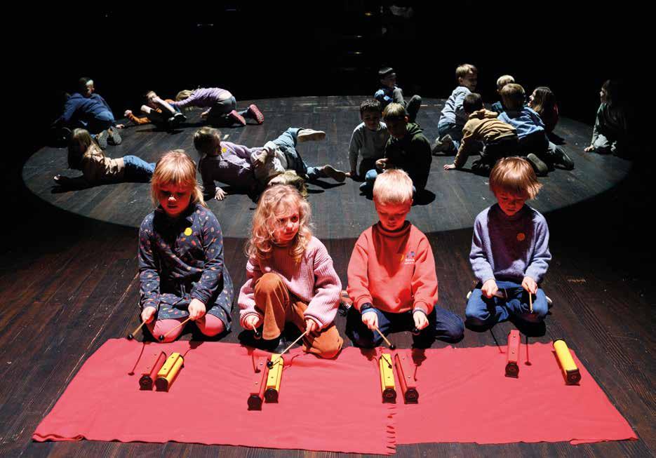 Kinderen maken kunst en spelen muziek met orkestleden in de klas. En ze mogen op ons grote podium bij de muzikanten zitten