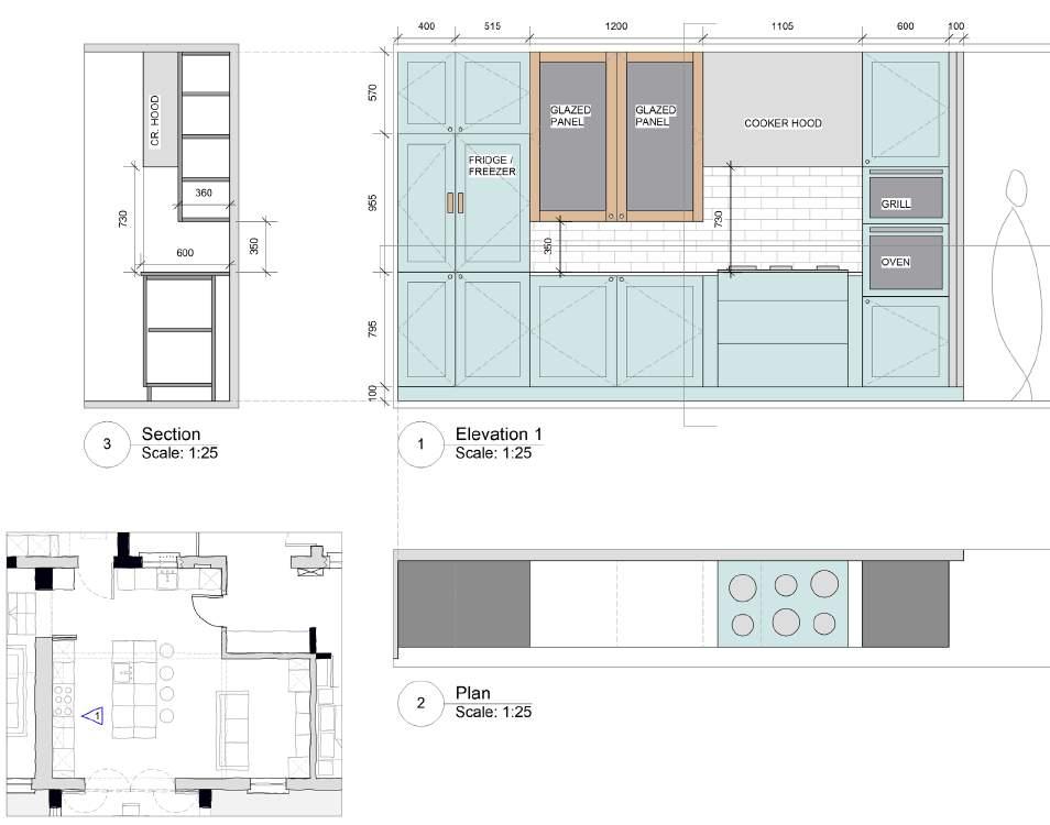 Le travail a consisté en la restructuration des intérieurs de la maison et la création d’une extension de petite taille, évitant le besoin d’un permis de construire. La cuisine existante était exiguë et ne contenait qu’une seule fenêtre orientée vers le nord.