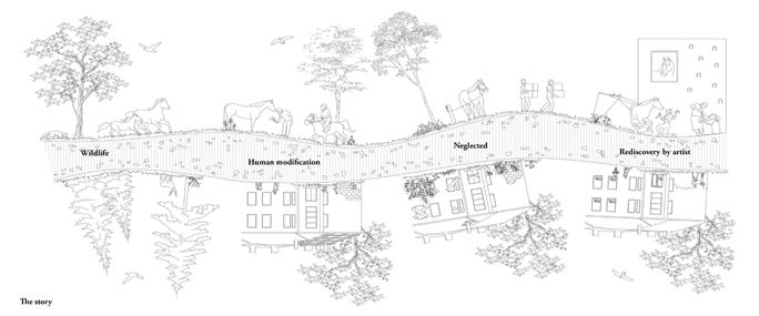The theme of oblivion has been treated universally, referring to the sightseeing path and the construction methods used and building emotions among visitors. As a result of these analyses, a group of smaller objects and exhibitions was created, and the sightseeing path itself extends beyond the walls of the building.
