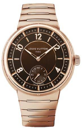 Que placer ver el tiempo correr así… El reloj automático Tambour de 40 mm en oro rosa reinterpreta el emblemático diseño de la Maison con una caja delgada y una original pulsera metálica integrada.