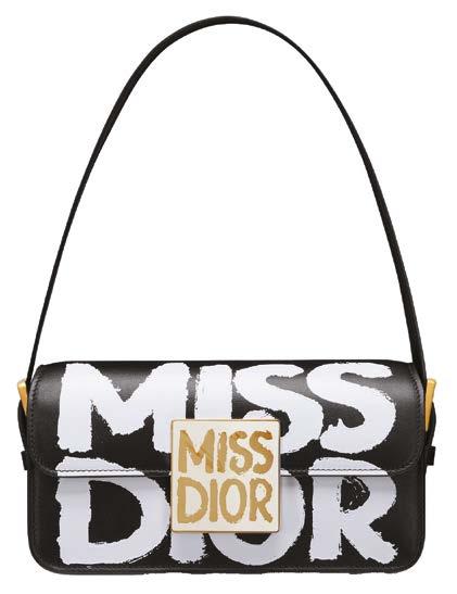 Amando este diseño del Miss Dior con solapa presentado en el des le otoño-invierno 2024-2025 con gra ti en blanco. Gracias a la correa ajustable, el bolso puede llevarse colgado del hombro para lucir un estilo actual y de alta costura.