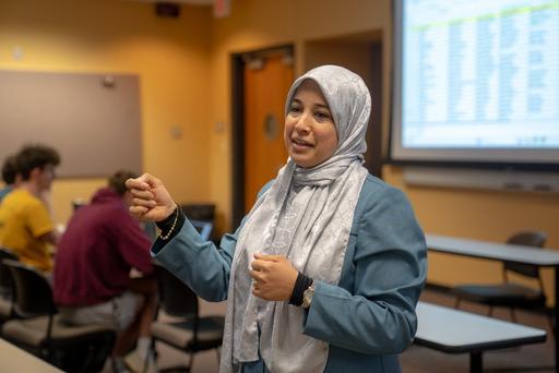 Hamouda’s approach reflects her decade of experience teaching database design and her belief that students learn best by doing. “It’s no longer like a lecture where I stand in front of them and talk for an hour, ” she said. “We actually do the project in class Once we cover a concept, they apply it immediately ”