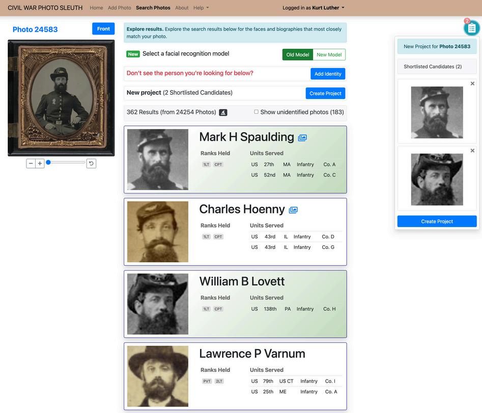 Launched in 2018, Civil War Photo Sleuth pairs technology with passion Originally funded by the National Science Foundation, Luther and his Ph.D. student Vikram Mohanty developed software that could compare facial features across thousands of digitized 19th-century portraits. With historian Ron Coddington, they created a crowdsourced platform to identify forgotten faces.