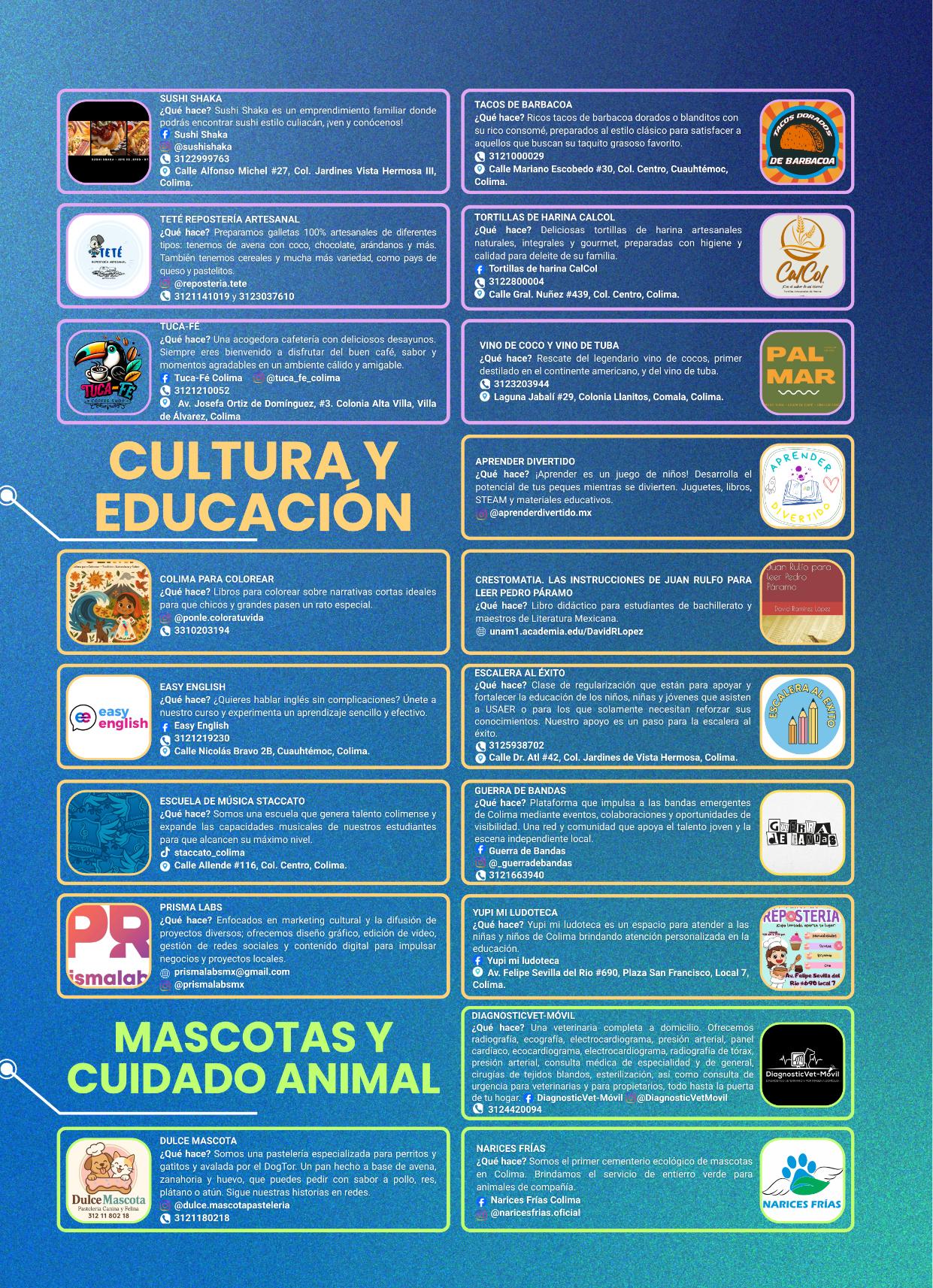 Queremos que esta sea la vitrina del emprendimiento, el escaparate, así que a todas y todos nuestros lectores: aprovechen. Lo que necesitan, seguro lo encuentran, hecho en Colima.