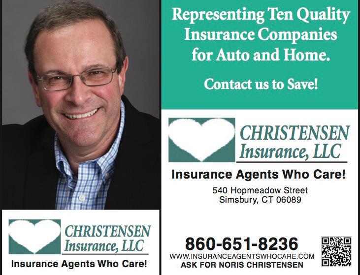 TODAY MAGAZINE – www.TodayPublishing.net – DECEMBER 2022 17 Health Care Center 860-651-8236 www.Insuranceagentswhocare.com LIFE IS COMPLICATED, WE CAN HELP.... Better Insurance! Find out how you can get improved value and peace of mind. Three generations serving local families for over 60 years. your approval or changes to: Allison@Terraboost.com APPROVED date signature ank you for placing your ad with us! 860-651-8236 www.Insuranceagentswhocare.com LIFE IS COMPLICATED, WE CAN HELP.... Better Insurance! Find out how you can get improved value and peace of mind. Three generations serving local families for over 60 years. (Layout includes a margin clear of text and graphics as this information may be covered by frame and/or clips during installation) Please carefully proof your ad AD PROOF Hand Sanitizing Billboard review, please sign and mark appropriate box below. your approval or changes to: Allison@Terraboost.com are not responsible for grammatical errors) APPROVED date signature ank you for placing your ad with us! Noris Christensen 374 Hopmeadow Street • Simsbury, CT 06089 860-651-8236 www.Insuranceagentswhocare.com Find out how you can get improved value and peace of mind. Call or visit our o ce today! For improved value and peace of mind, call or visit our ofce today! 860-651-8236 Christensen Insurance 540 Hopmeadow St. • Simsbury, CT www.insuranceagentswhocare.com Insurance Jewelry Hardware For over 45 years, we’ve provided a safe and caring environment for residents to maintain an optimal quality of life! D Alzheimer’s & dementia care D Hospice and palliative care D Physician & nursing services D Therapeutic recreation D Short-term rehabilitation D Long-term care D Post-acute & transitional care D Respite care SKILLED NURSING & REHABILITATION CENTERS FAMILY OWNED AND OPERATED Patient-Centered Care ALWAYS OUR TOP PRIORITY 652 West Avon Road, Avon 860-673-2521 avonhealthcenter.com 130 Loomis Drive, West Hartford 860-521-8700 westhartfordhealth.com