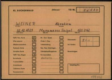 Abraham “Abby” Weiner’s ID card from the Buchenwald concentration camp