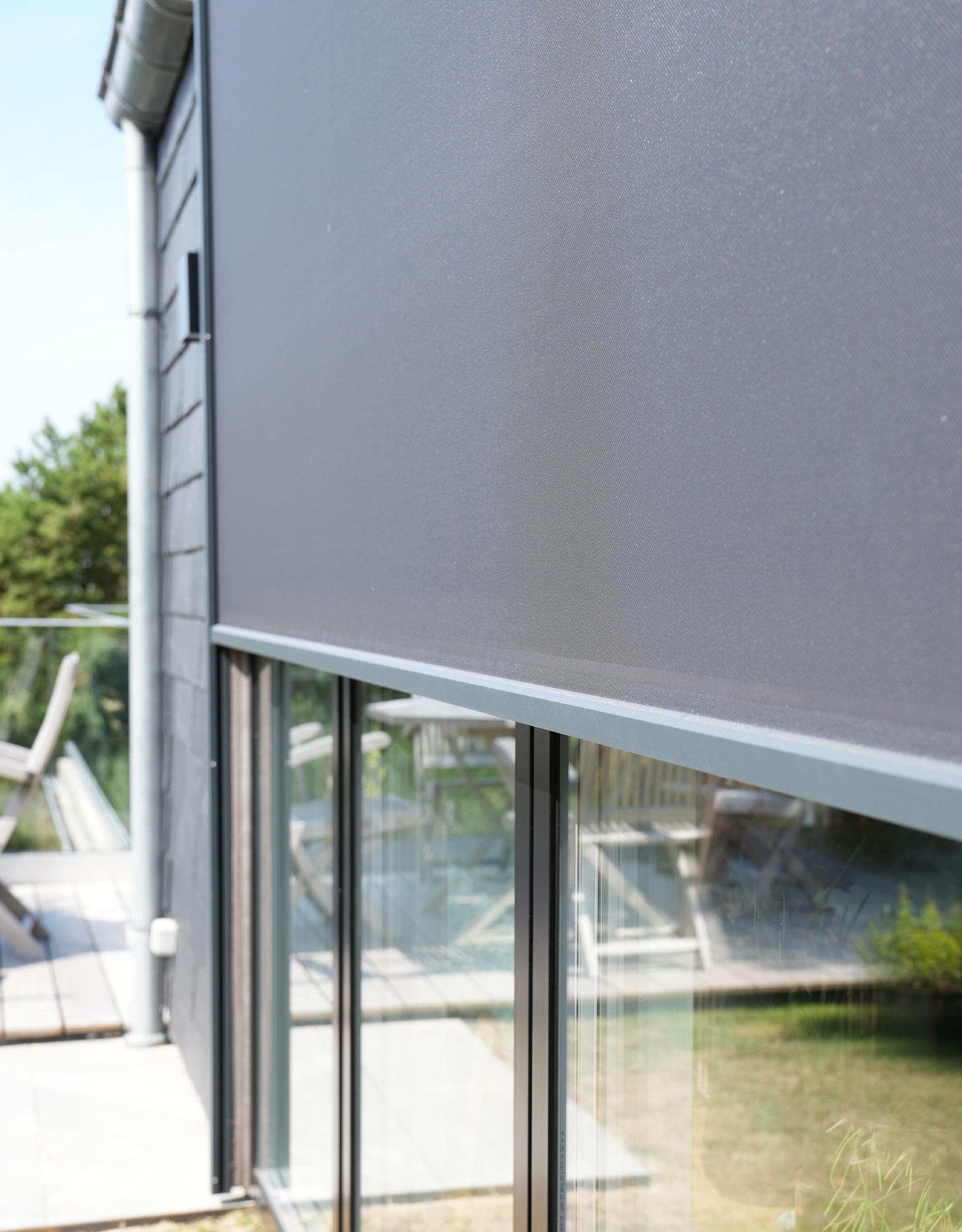 De udvendige screens integreres elegant på husets facade.