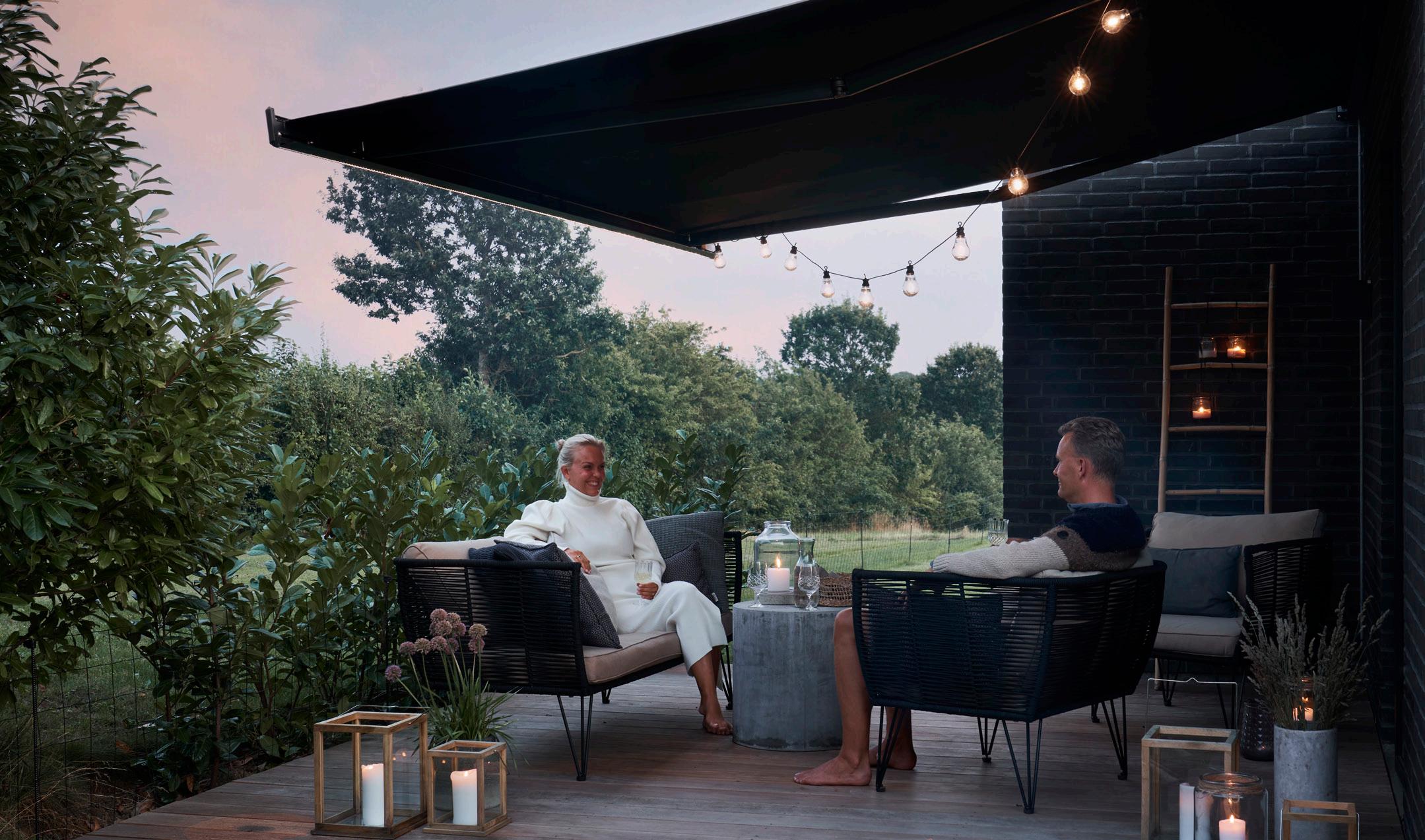 • Forlænget udesæson: Ved at skærme mod sol, let vind og regn kan en markise give flere timer udendørs – både på varme sommerdage og kølige aftener. Med integreret lys kan stemningen forlænges, selv når solen er gået ned.