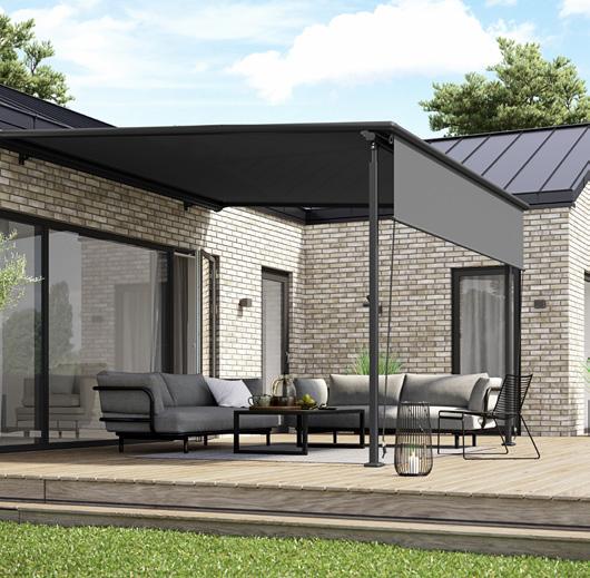 • Robust og stilfuld løsning: Med sin faste konstruktion og elegante design bliver pergolamarkisen en naturlig forlængelse af boligen. Den fås i forskellige farver og materialer, så den kan tilpasses enhver stil.