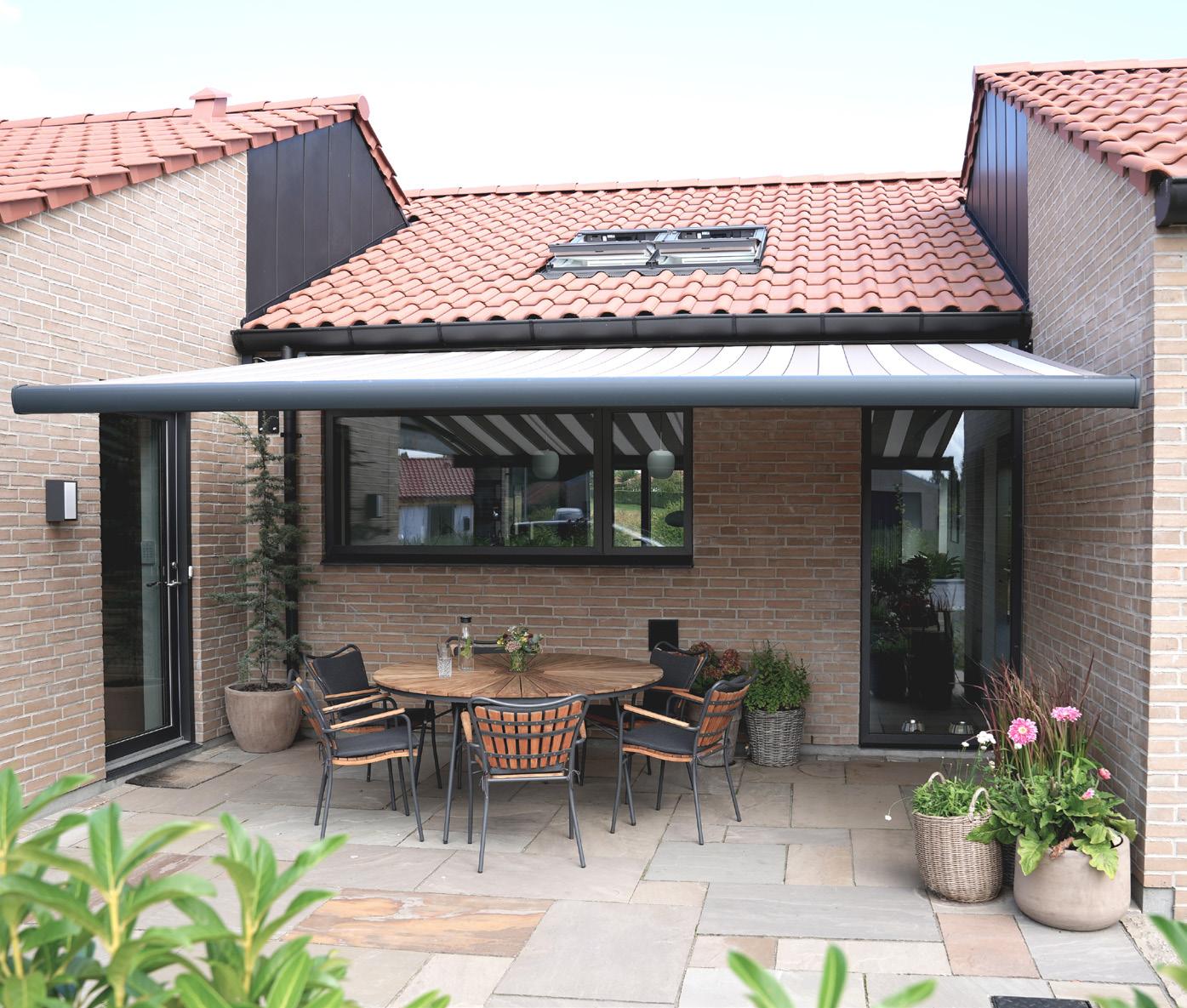• Mere skygge og et køligere hjem: En markise giver behagelig skygge på terrassen og hjælper samtidig med at holde temperaturen nede inde i boligen ved at blokere for solens stråler.