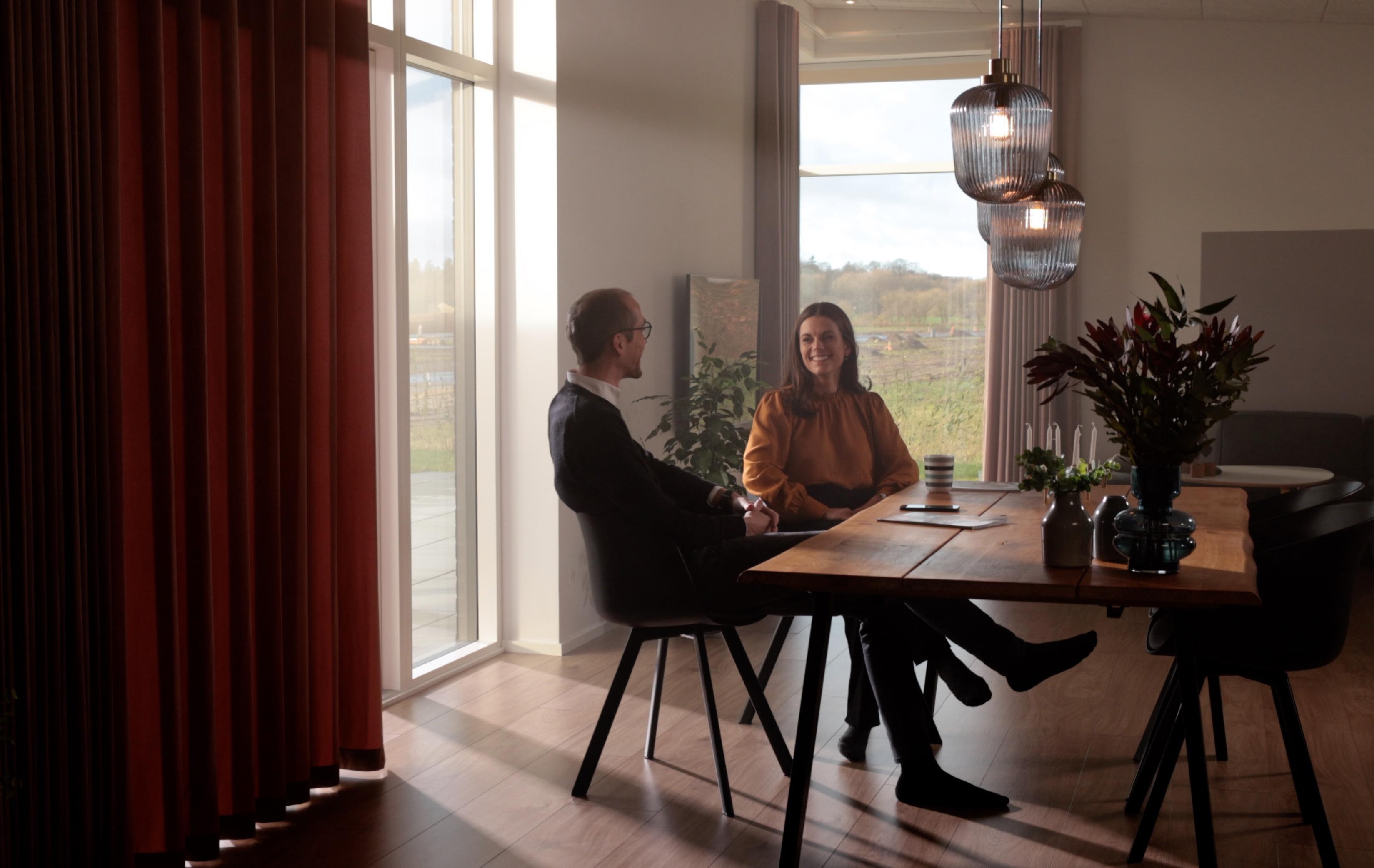Tal med jeres boligrådgiver om mulighederne, så gardinerne bliver en del af jeres samlede boligøkonomi, og alt hænger klar, når I flytter ind i jeres nye hjem.