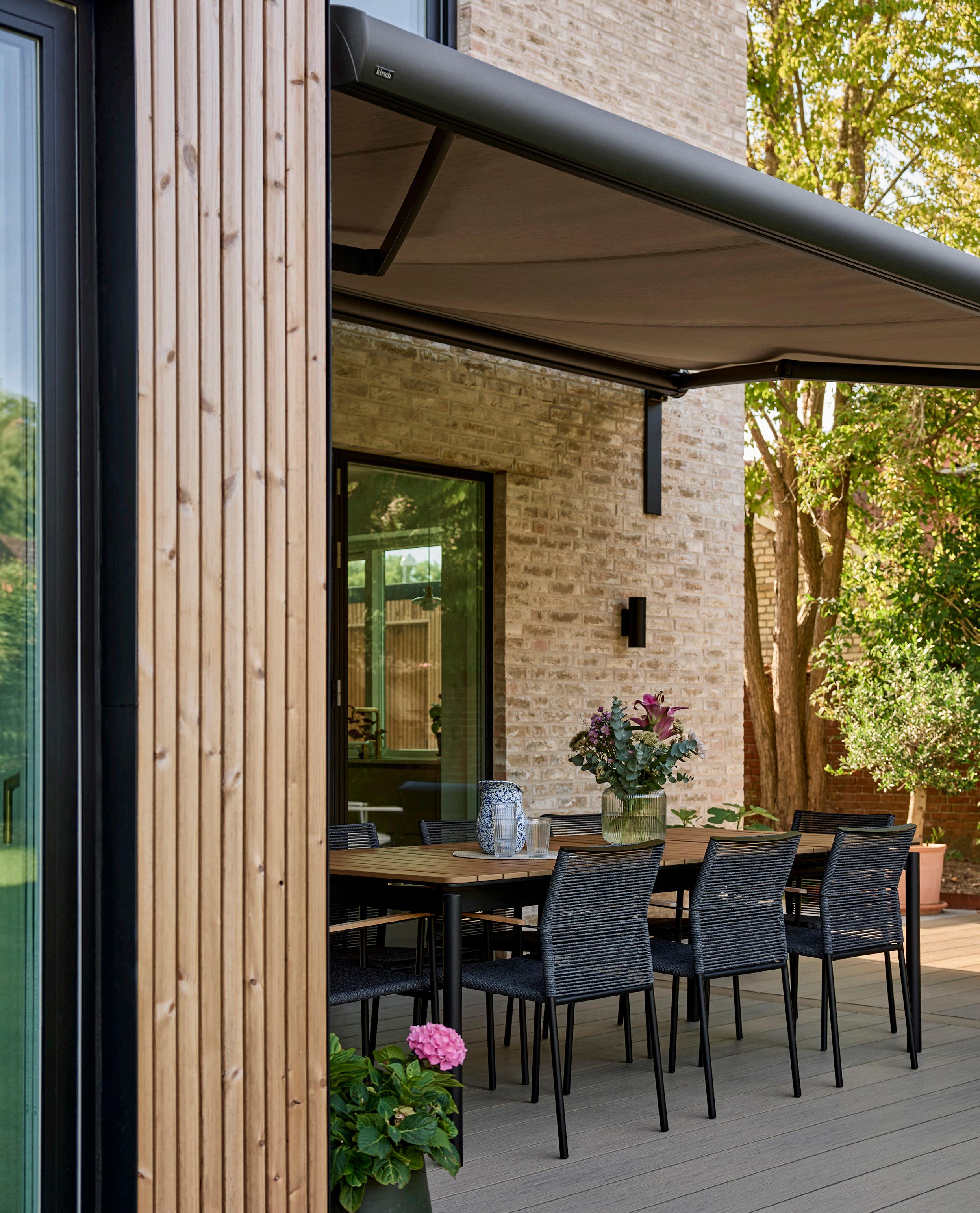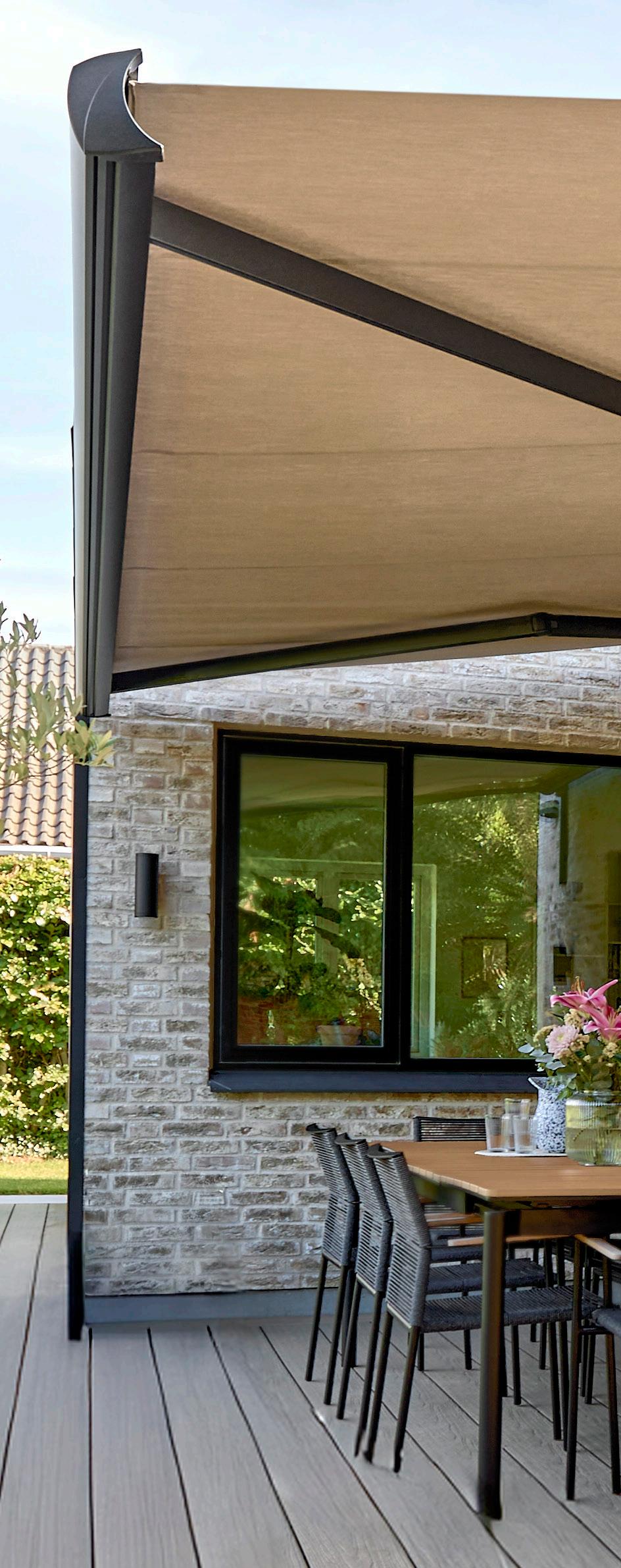 Uderummet er en naturlig forlængelse af hjemmet – et fristed under åben himmel. En markise kan forvandle terrassen til et ekstra opholdsrum, hvor I kan nyde dagen fra morgen til aften. Den skærmer effektivt mod solen og holder på varmen, når aftenen falder på.