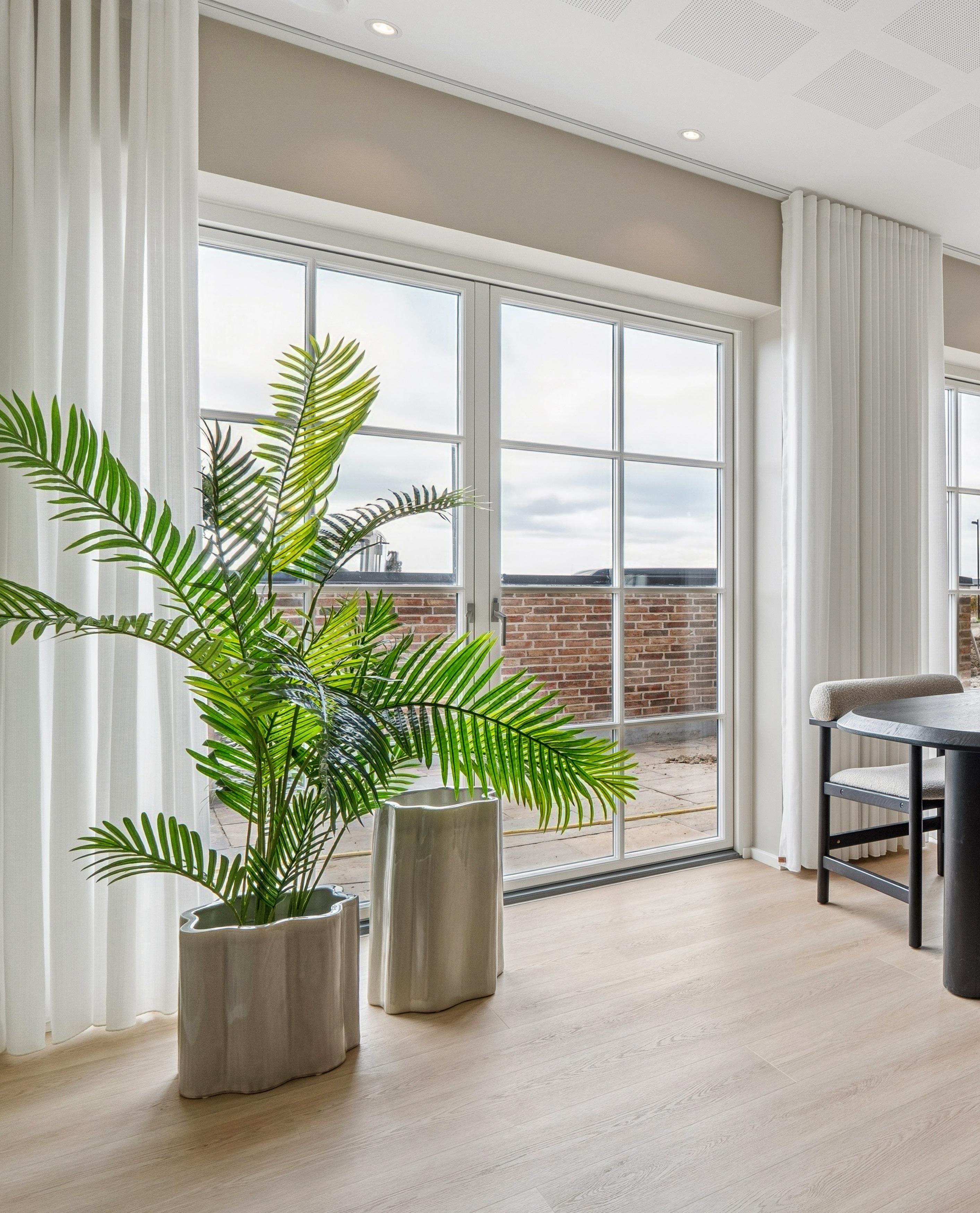 Alt er klar ved overtagelse - vælg frit mellem alle gardintyper. Vi sørger for, at gardinerne er monteret, når I får nøglen.