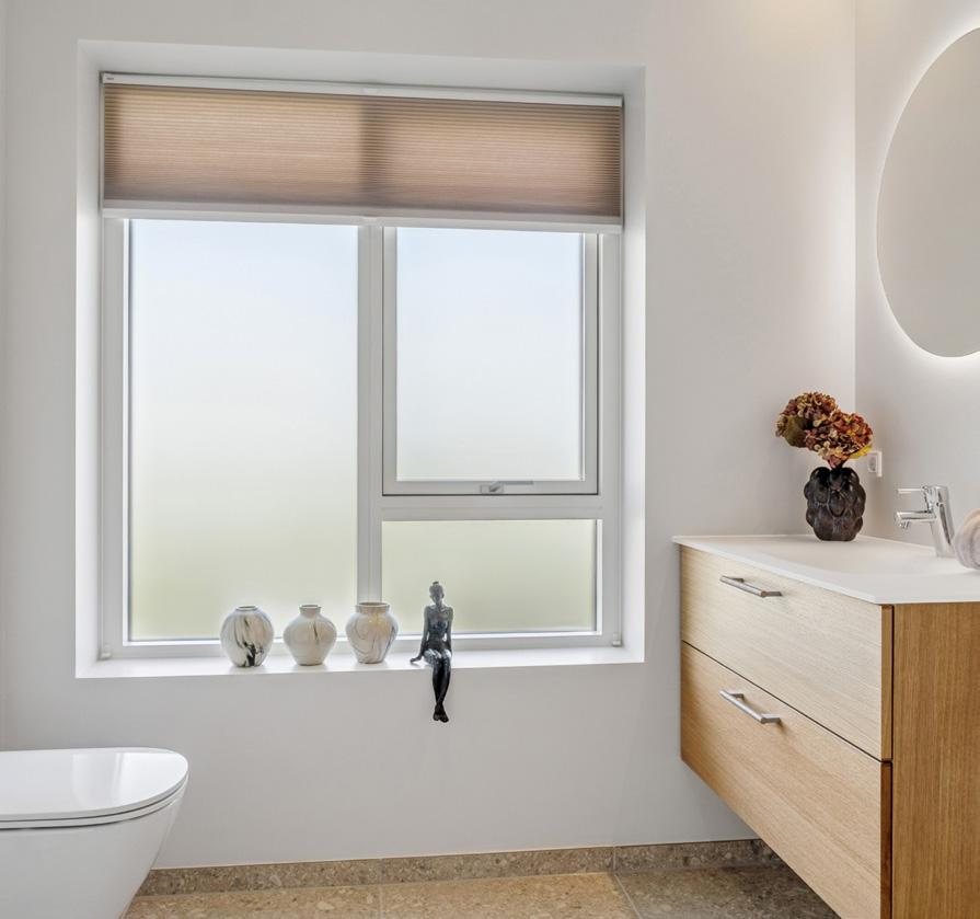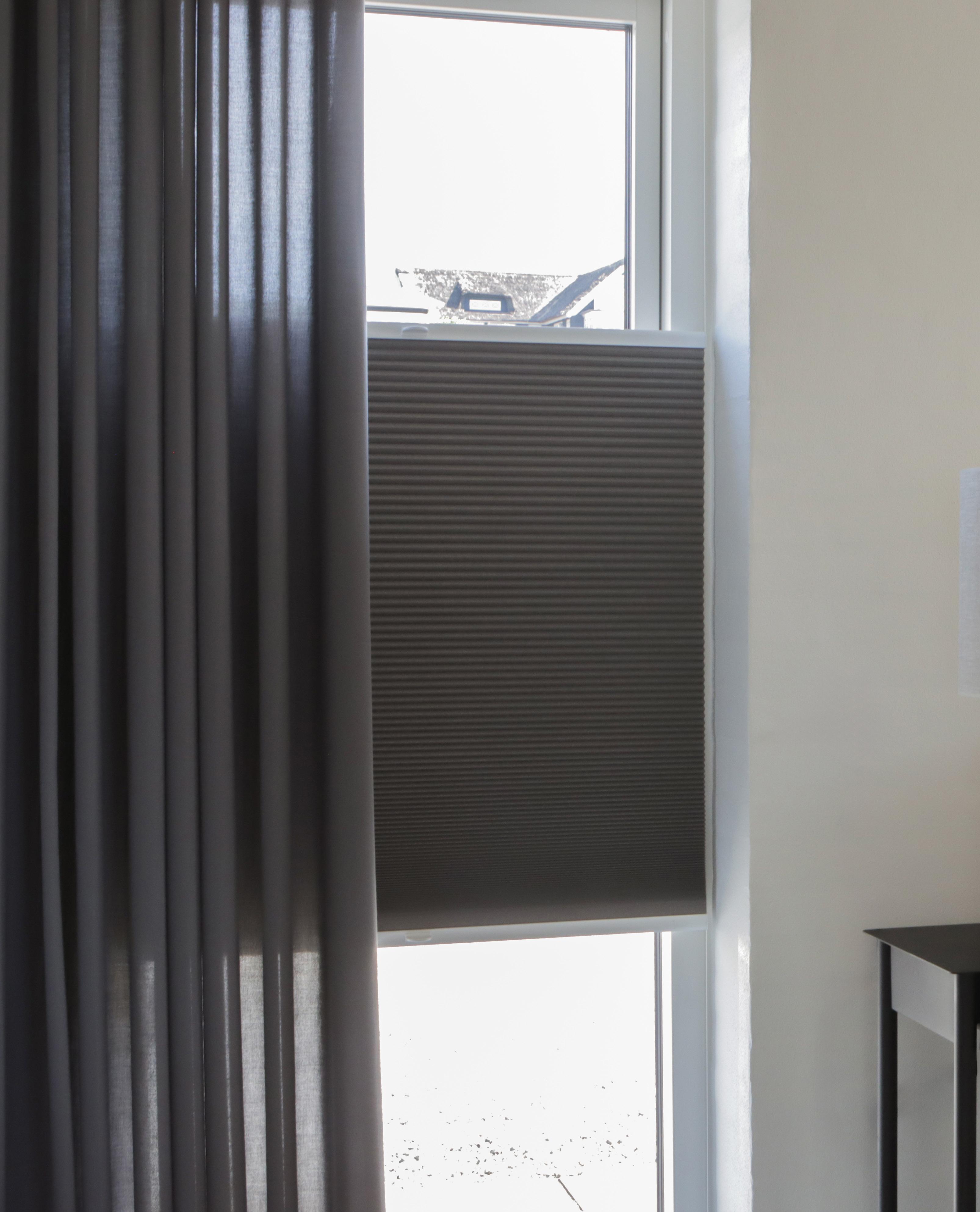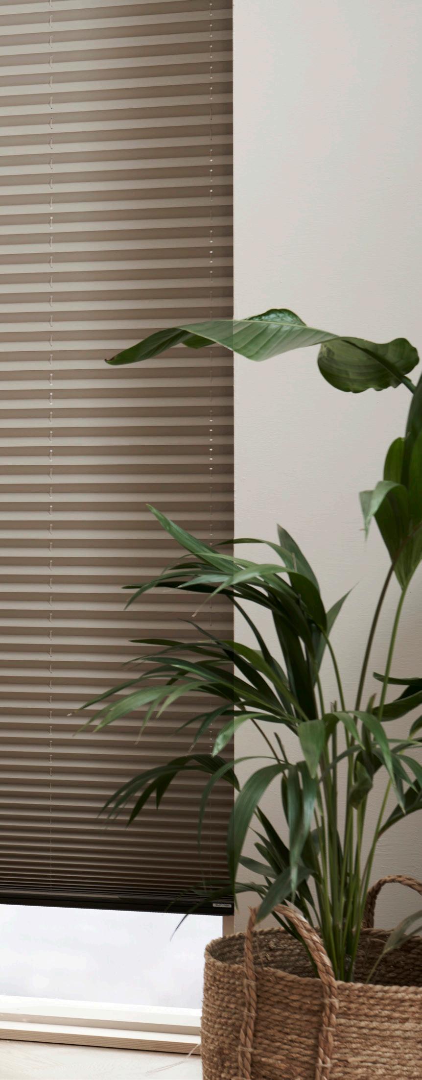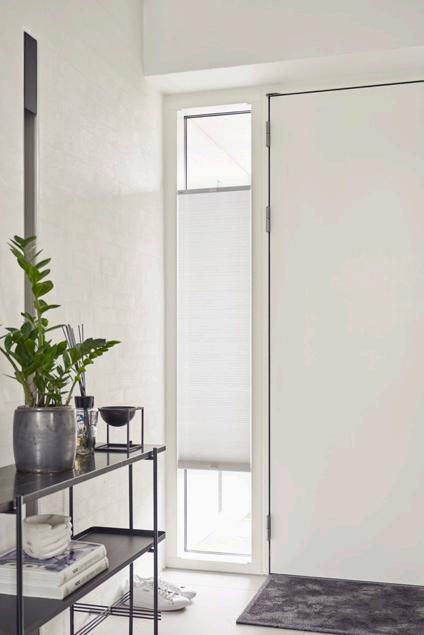 Med up and down-plisségardiner kan lys og privatliv tilpasses efter både rummet og tidspunktet på dagen. Gardinet kan justeres både nedefra og oppefra, så det skærmer for indkig nedefra, mens dagslyset stadig kan strømme ind oppefra. En ideel løsning til nybyggeri, hvor haven stadig er åben, og I ønsker både lys, udsyn og afskærmning på samme tid.