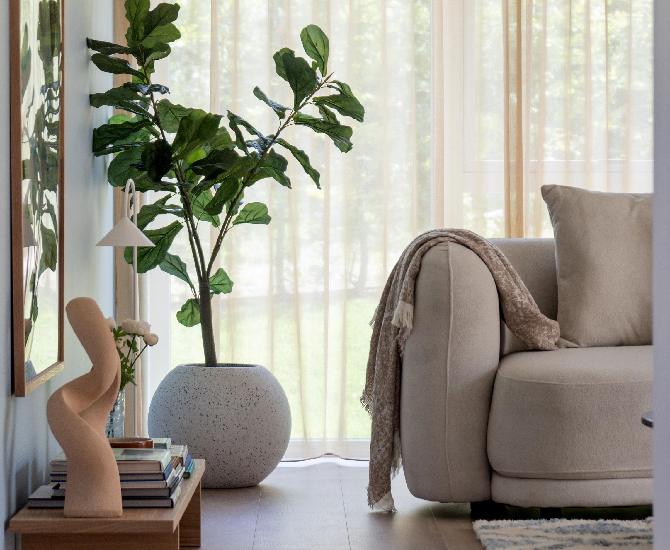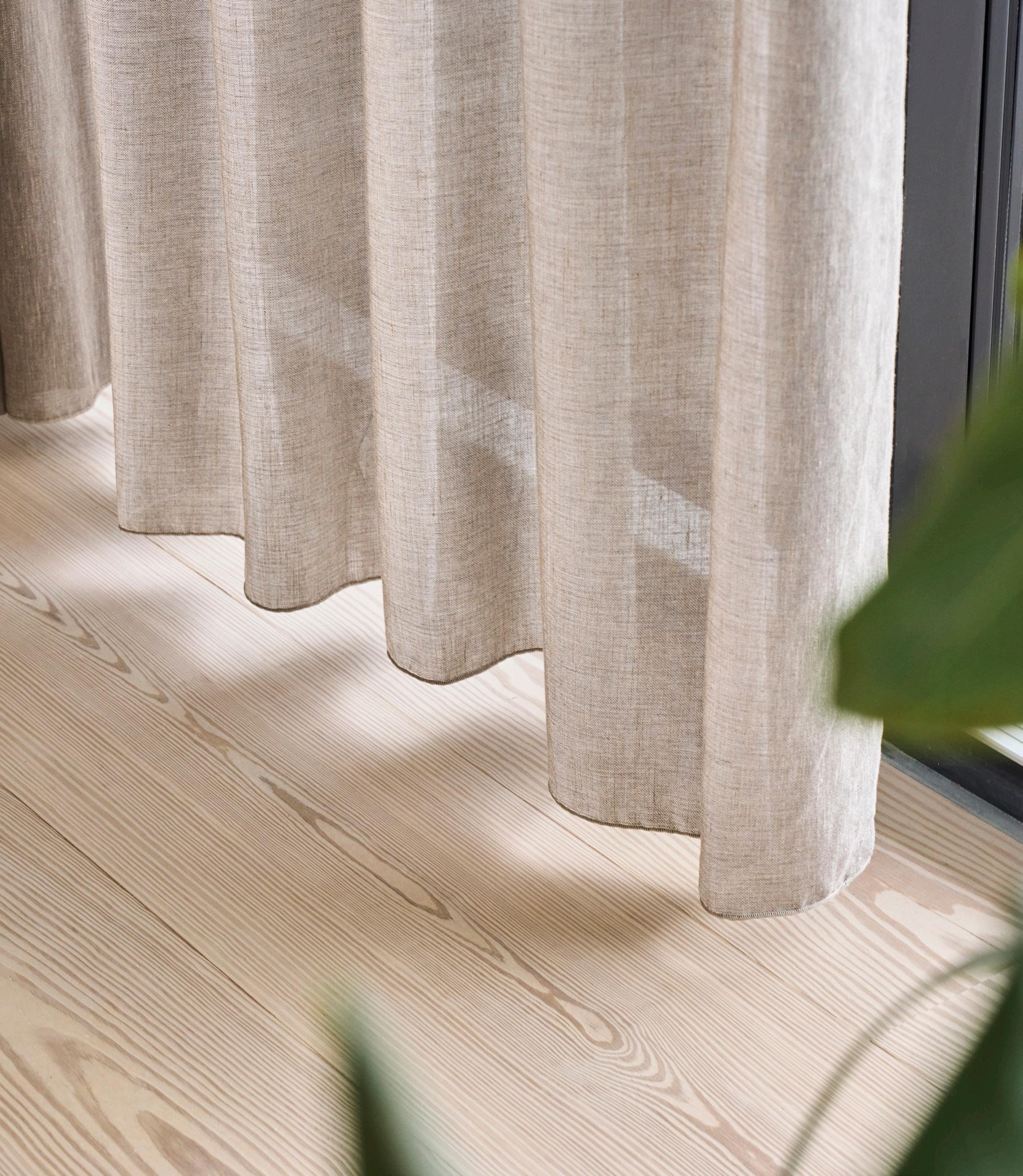 Bløde, naturlige farver skaber ro og balance i hjemmet. Fra lyse, neutrale nuancer til varme beige toner giver de et tidløst og indbydende udtryk. Ønskes mere kontrast i indretningen, kan den skabes med enkelte gardinfag i en mørkere farve – eller med puder, tæpper og andre detaljer, der tilfører dybde og personlighed.