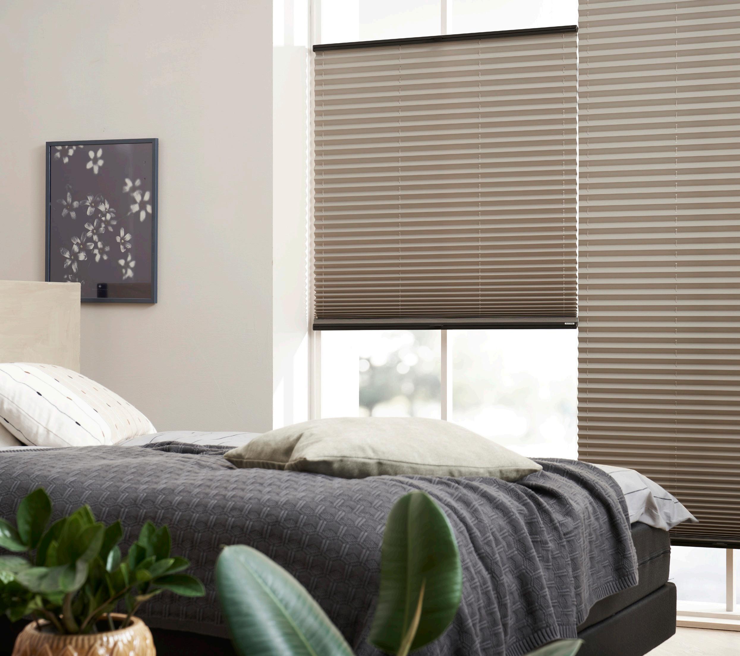 Plisségardiner fås med forskellige betjeningsmuligheder – med eller uden snore og kædetræk – og i både enkelt- og dobbeltlag væv.