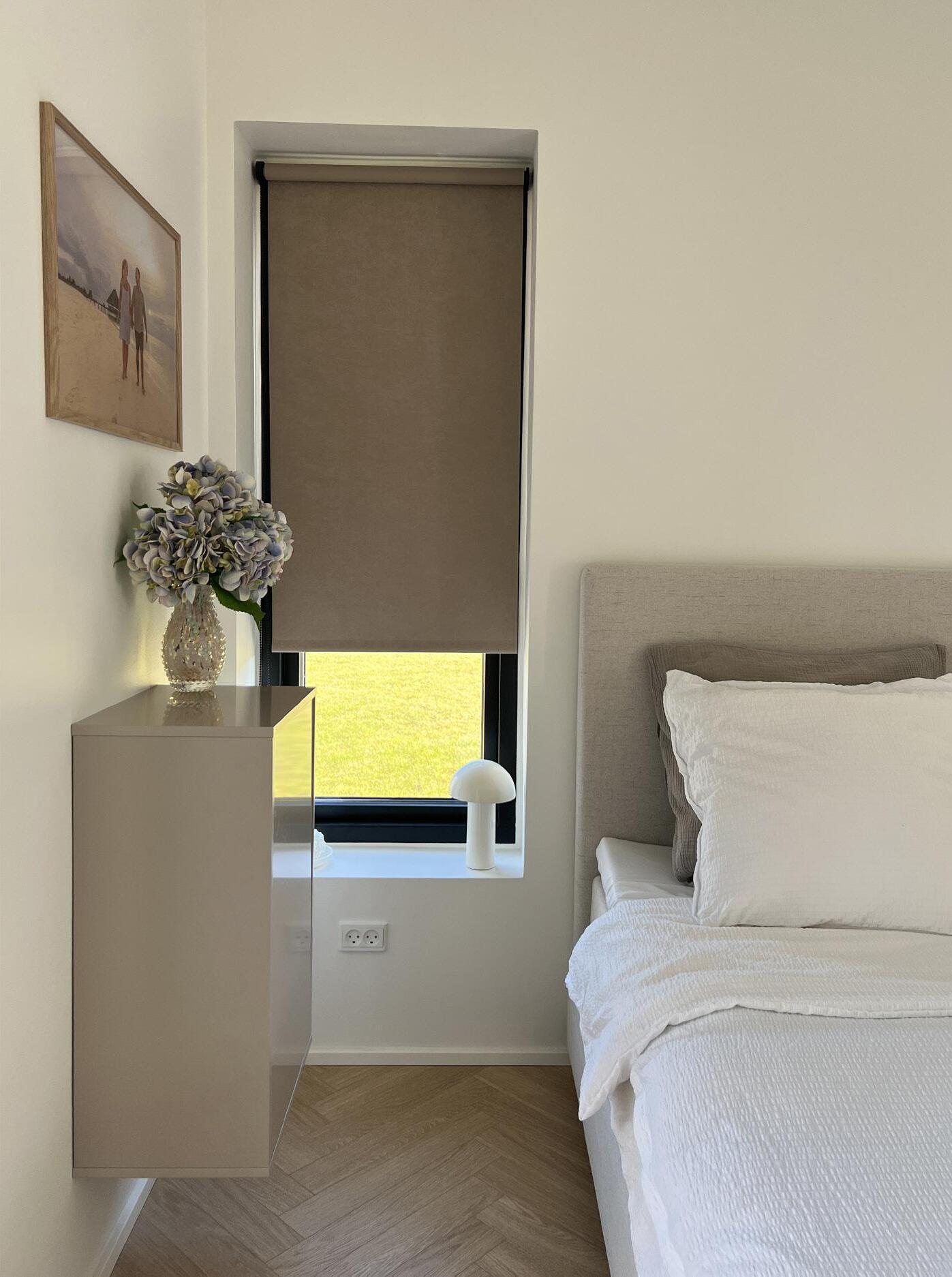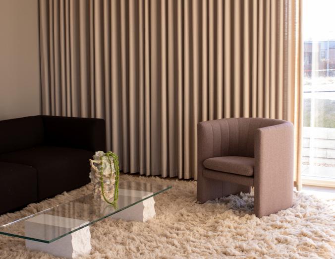 Vi producerer, leverer og monterer. Gardinerne hænger klar, når I overtager jeres nye hjem, så privatliv og komfort er på plads fra dag ét.