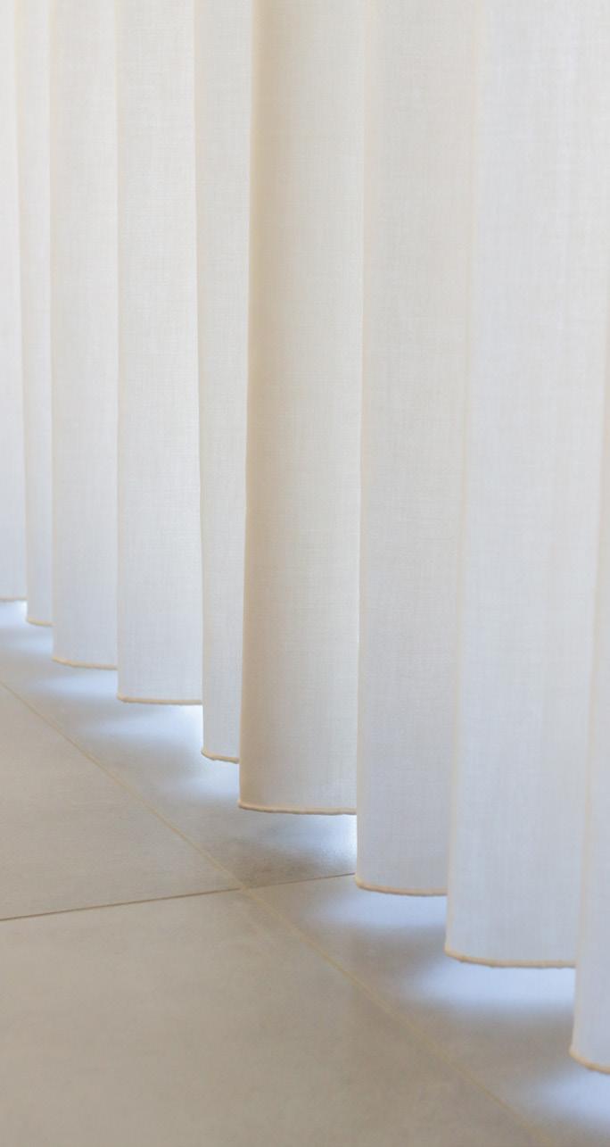 falder gardinet i smukke, jævne bølger, der giver et roligt og elegant udtryk.