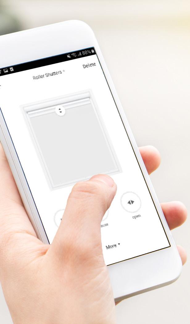 endda betjenes, når der ikke er nogen hjemme. I appen kan man opsætte personlige scener, tidsindstille gardinerne eller lade dem følge solens position for at sikre det rette lys og et behageligt indeklima hele dagen. At gardinerne kan køres ned under ferie, giver samtidig en ekstra følelse af tryghed.