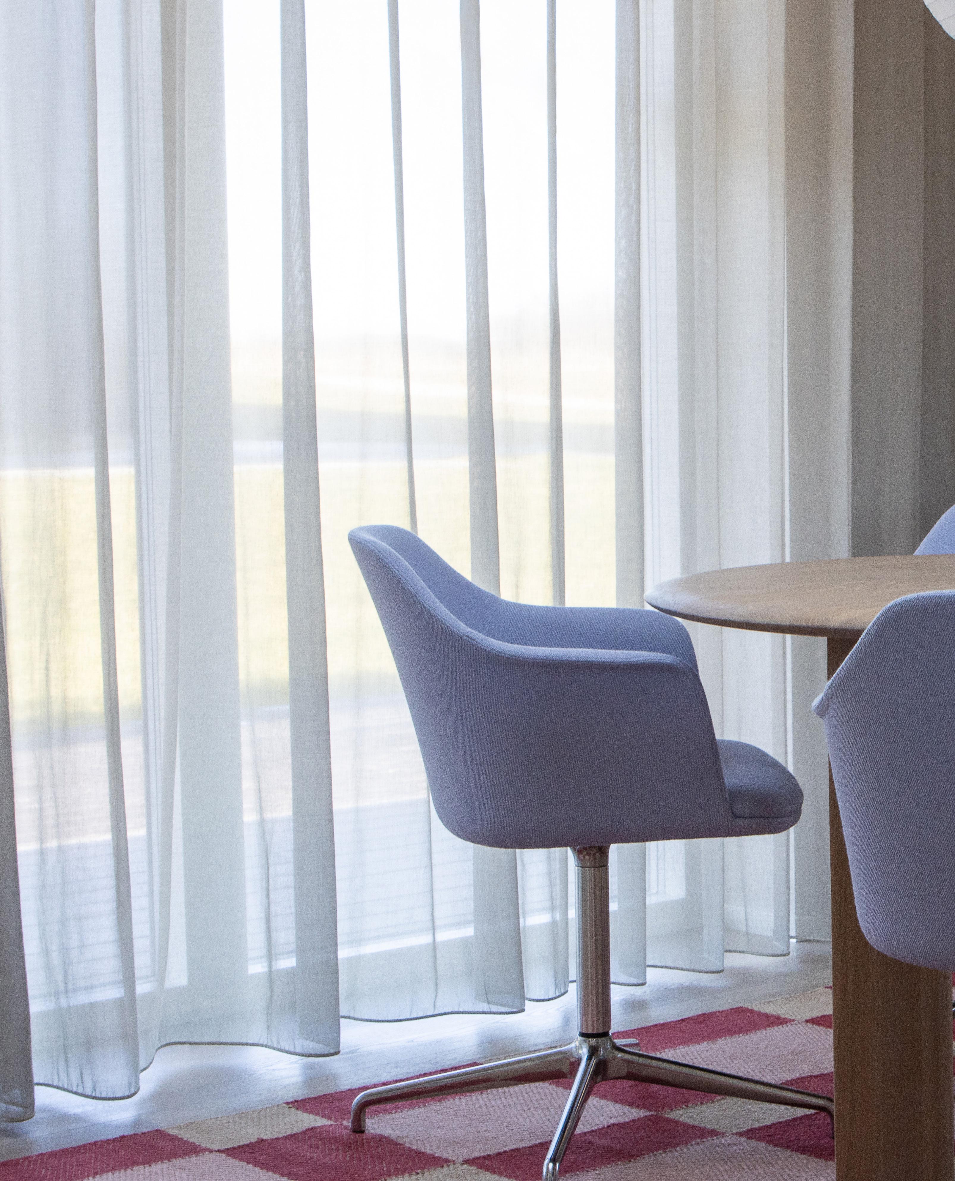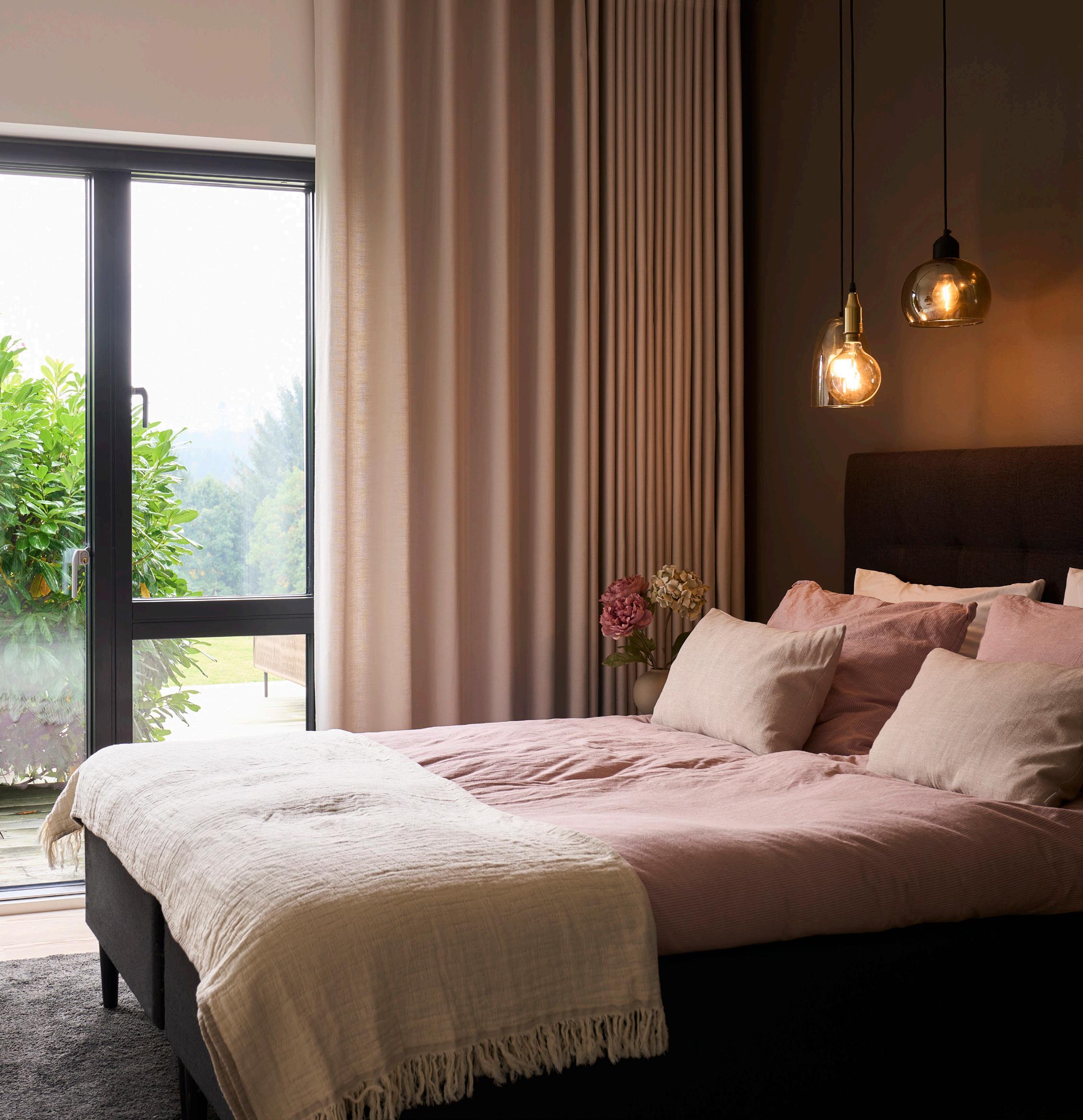 Lette gardiner giver masser af lys og privatliv på samme tid. De kan bruges alene for en let og luftig atmosfære – eller kombineres med kraftigere gardiner for et lag-på-lag-look med eksklusiv hotelstemning. Resultatet er et blødt, filtreret lys om dagen og god afskærmning mod indkig i aftentimerne.