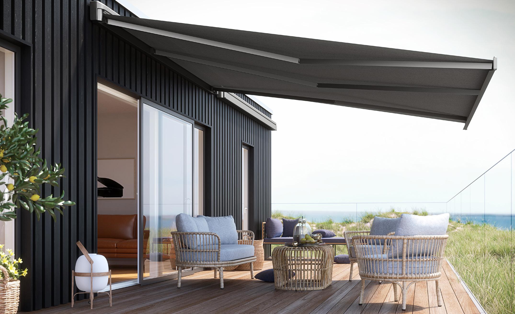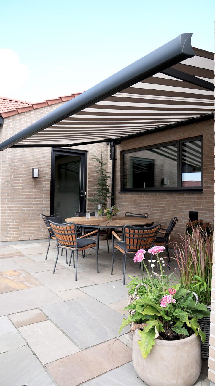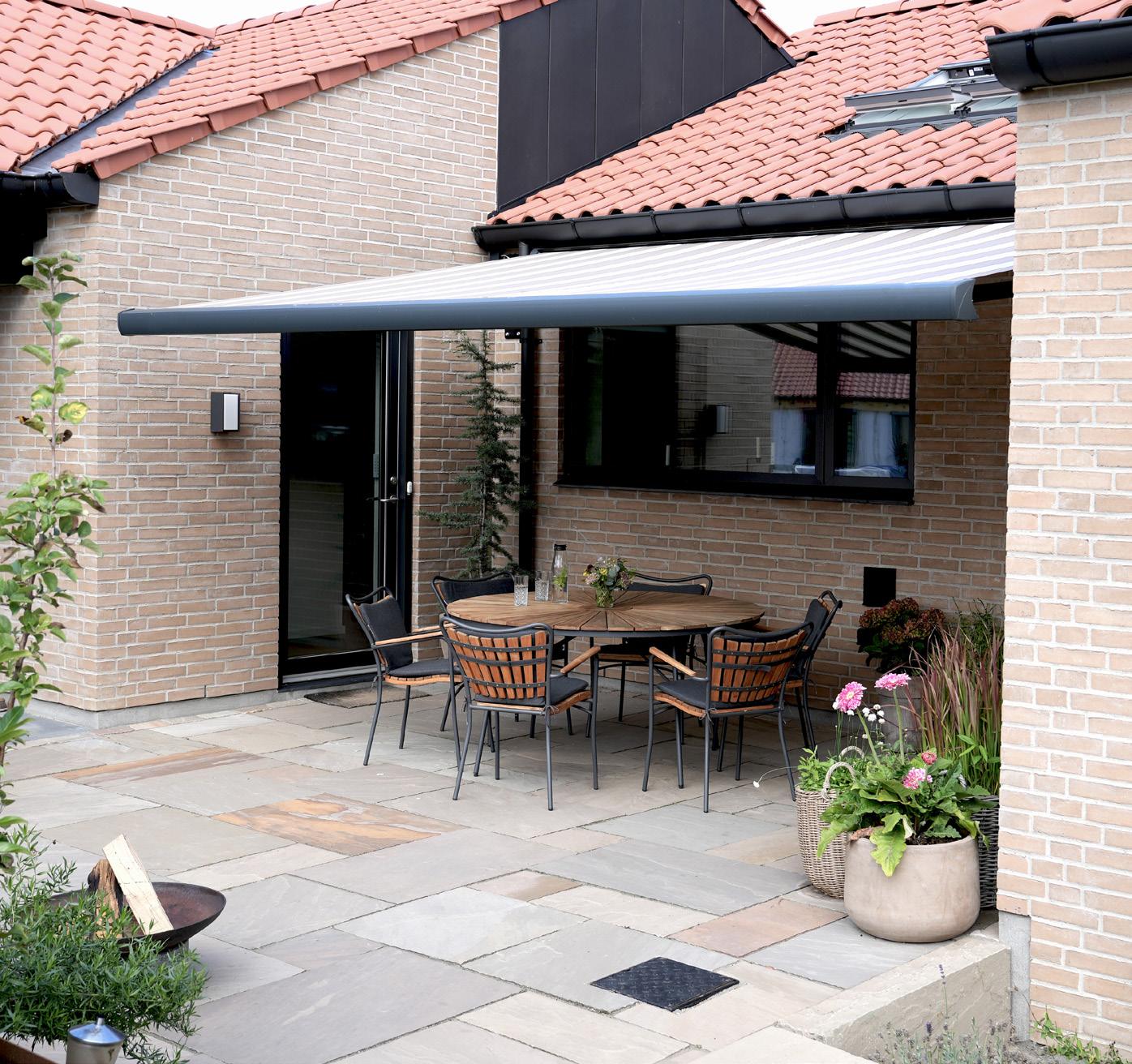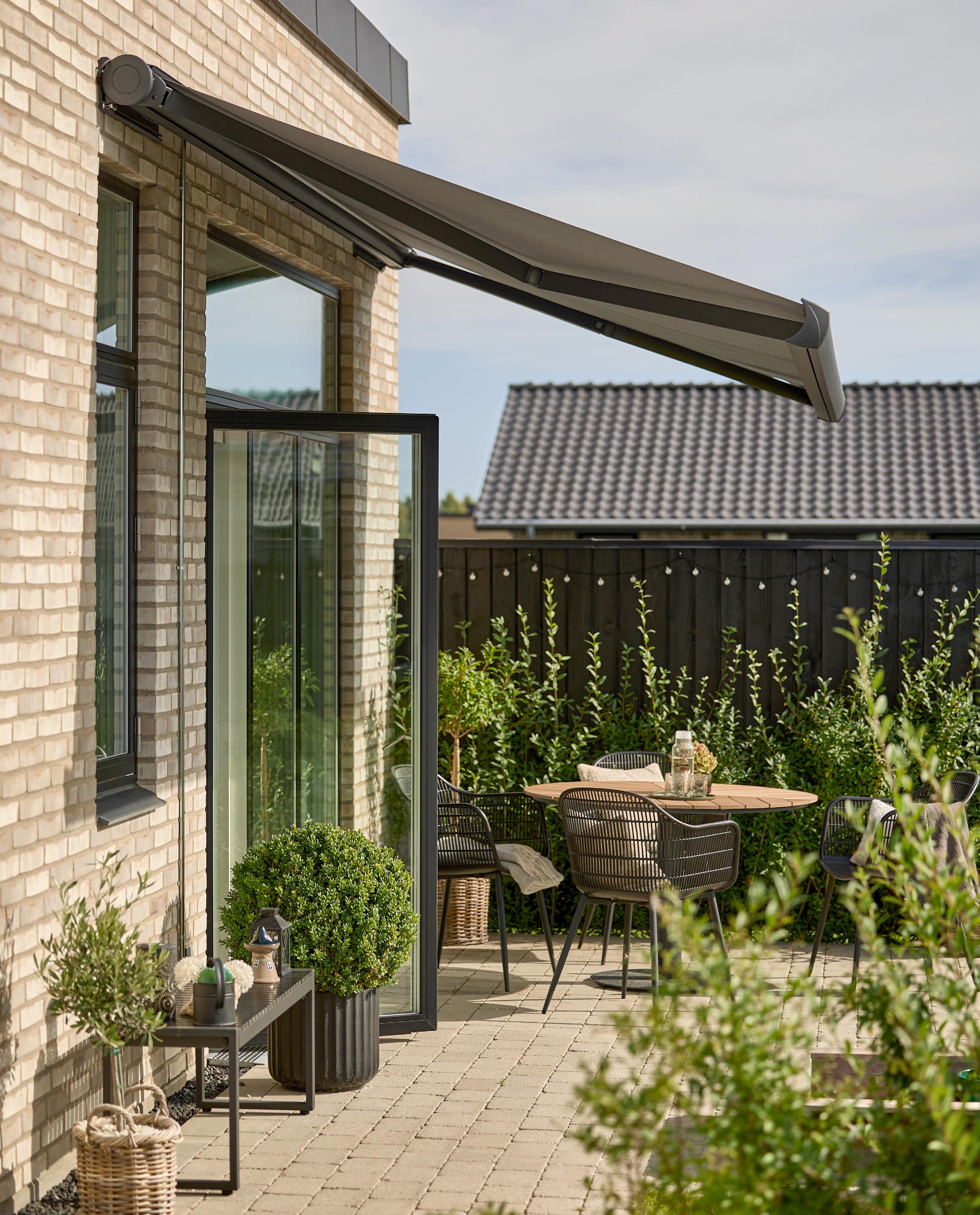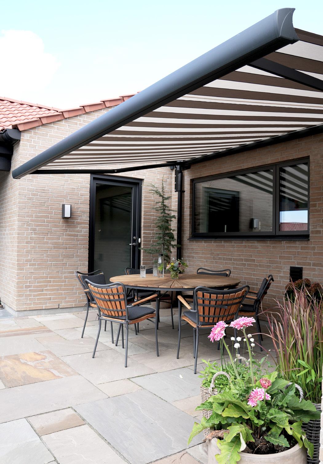 • Mere skygge og et køligere hjem: En markise giver behagelig skygge på terrassen og hjælper samtidig med at holde temperaturen nede inde i boligen ved at blokere for solens stråler.