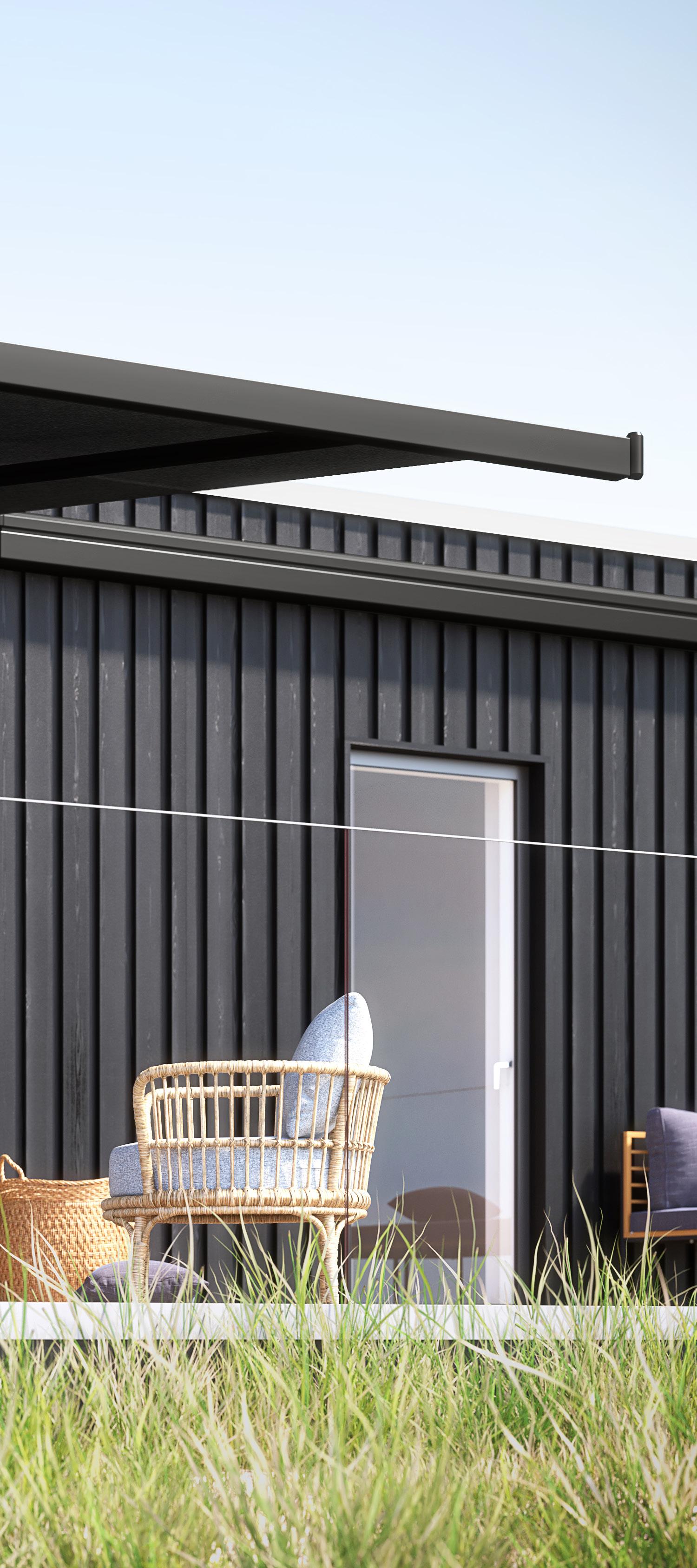 • Mindre belastning: I modsætning til traditionelle markiser fordeler Sigma pergolaen vægten via de lodrette ben, hvilket gør den ideel til montering på vægge af træ eller gasbeton, hvor en markise kan være for tung.