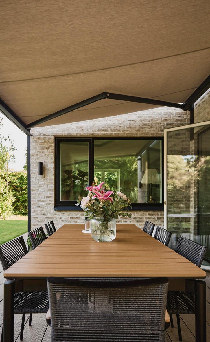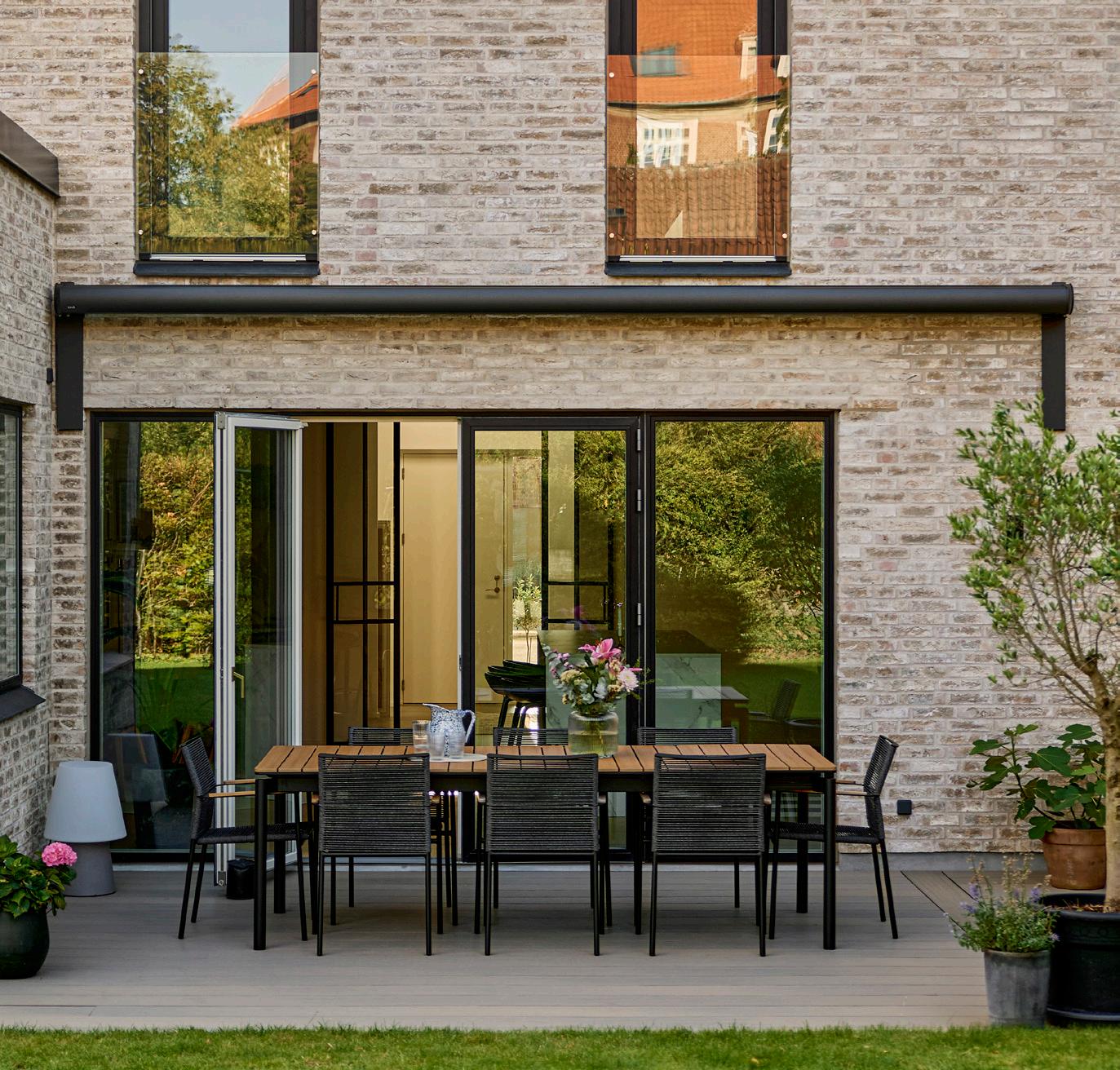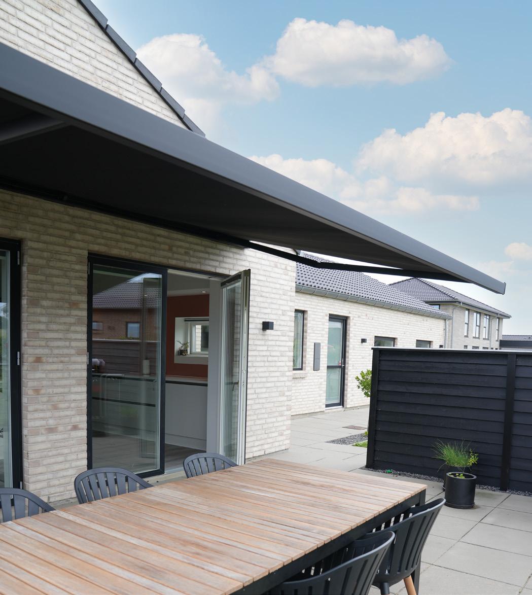 • Effektiv skygge: En pergolamarkise dækker et større område end en klassisk markise og giver både skygge og læ for let vind og regn, så uderummet kan bruges i endnu flere timer.