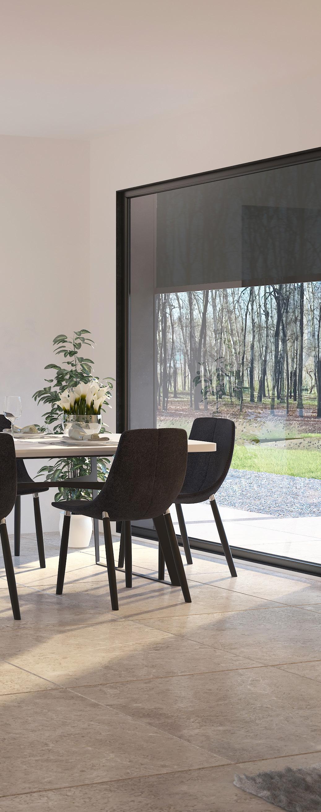 Denne løsning er ideel til boliger med store vinduespartier og bidrager til lavere energiforbrug, da behovet for nedkøling mindskes.